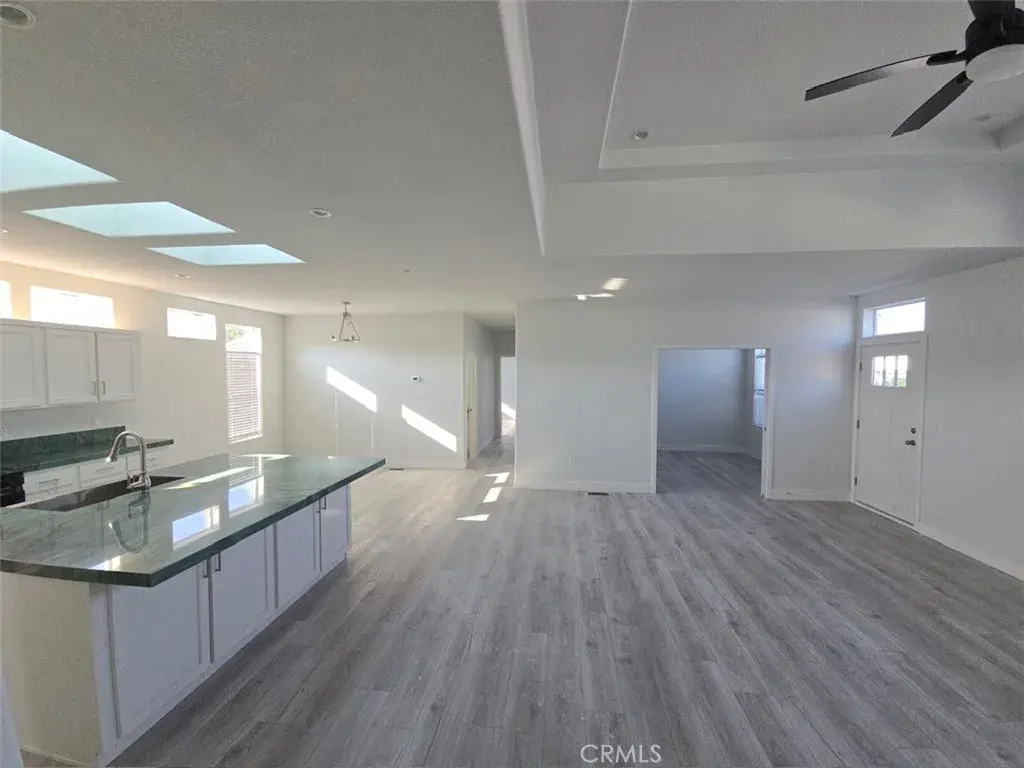 Brand New Architectural space-age 2000 square foot manufactured home. Up to 12 foot tall ceiling. 4 large bedrooms, 3 full opulent spa-like bathrooms. Entire home bathed in light, encircled with windows just below roof line. 2 separate master bedroom, master bathroom suites. Bedrooms separated by 40 feet, offering great privacy. Like having 2 separate houses in 1 house. Chef’s island kitchen, breathtaking emerald and orange Quartzite slabs of stone. Endless soft closing cabinets and drawers. Modern high quality appliances. Enormous living room with 12 foot tall coffered ceiling. Huge dining room easily seating 14 people or more. Generous master bedroom featuring great light, great sunset views, and large walk-in closet. Master bathroom is like entering a fine resort spa. Large stone shower. Large soaking tub. 9 foot long vanity featuring Crystallo Quartzite slabs of stone. Brushing your teeth and washing your face above million year old CRYSTALS. Second master bedroom, master bathroom suite on opposite side of home. Large room, tons of light. Spa-like 2nd master bath, with large stone shower with sitting bench, and long vanity featuring Crystallo Quartzite slabs of stone. Brushing your teeth above Crystals. Bedrooms 3 and 4 are large as well. All bedrooms filled with light, and have great closet space. Bathroom 3 features lovely tub/shower and Crystallo Quartzite slab of stone. Large Utility room for all your needs. Up to 4 car covered parking. Up to 6 foot tall fencing permitted. Small back yard. Room for Large covered deck. Incredibly LOW monthly land rent, locked in by Rent Control. Separate storage area to park Boats or R.V.”s for additional 45 dollars per month. Gated, quiet community. Great clubhouse and resort style pool. No h.o.a. dues to pay. No regular property taxes to pay.