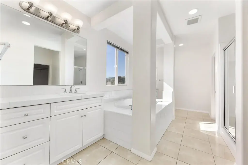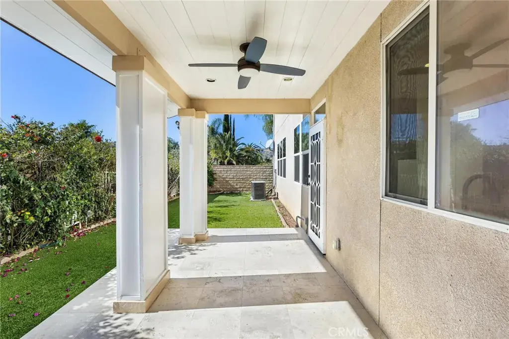 An abundance of windows fills the home with natural light throughout, enhancing the open and airy feel. A dramatic entry with a chandelier sets the tone upon arrival, leading into an open kitchen that flows seamlessly into the family room, highlighted by a cozy fireplace—perfect for everyday living and entertaining. A separate living room and formal dining room provide elegant spaces for gatherings and special occasions. The spacious primary suite offers a true private retreat, featuring a well-appointed en suite bathroom with a separate soaking tub and walk-in shower, along with a generous walk-in closet. Well-proportioned secondary bedrooms provide comfort and flexibility for family, guests, or work-from-home needs. Enjoy a private backyard with low-maintenance artificial turf and a covered patio, ideal for relaxing or outdoor dining year-round. Additional highlights include a two-car garage, ample storage throughout, and a layout designed for both functionality and flow. Just a short walk from Santa Susana State Park hiking trails, this home offers the perfect blend of natural beauty, neighborhood charm, and everyday convenience, with shopping, dining, and amenities close by.