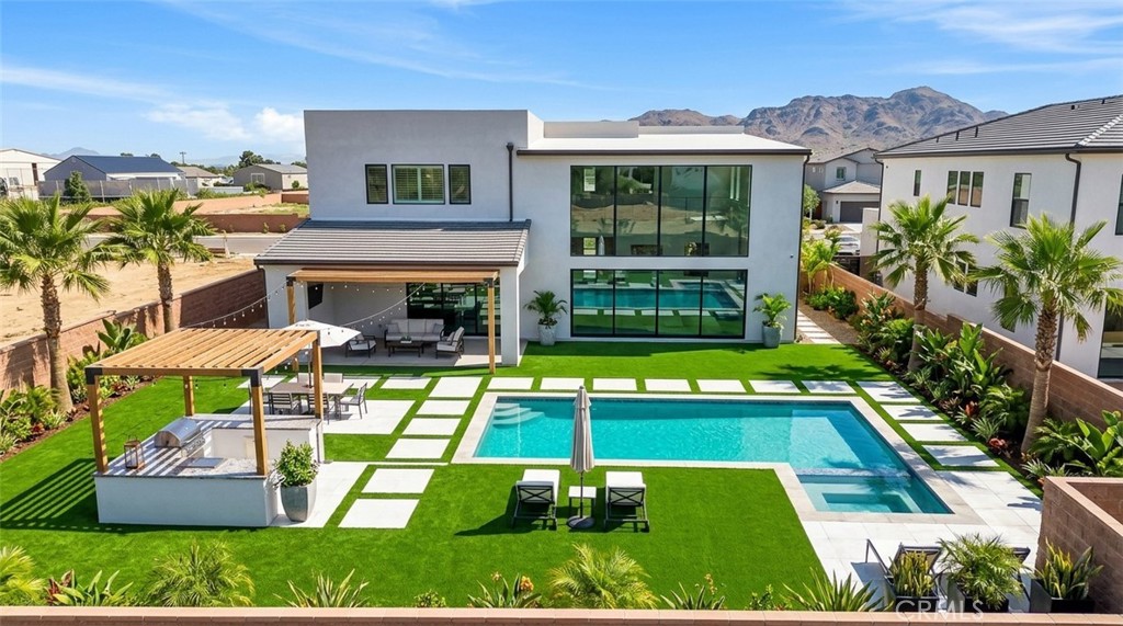 Welcome to the Sunstone Modern, a stunning new construction residence located within the exclusive Hidden Oaks community in Chatsworth. This private enclave features only 33 luxury estate-sized homes, surrounded by iconic mountains, dramatic rock formations, and breathtaking natural scenery. Situated on a cul-de-sac with an expansive private driveway, this impressive two-story home offers 4,629 square feet of thoughtfully designed living space with 5 bedrooms, 5.5 bathrooms, and a versatile loft area. The long driveway provides exceptional parking in addition to the 3-car garage, creating privacy and convenience rarely found in newer construction. Inside, the home showcases dramatic high ceilings, modern finishes, and an open-concept floor plan ideal for both everyday living and entertaining. The gourmet kitchen features sleek cabinetry, premium appliances, and a large center island that flows seamlessly into the main living areas. A first-floor bedroom suite with its own living space provides the perfect setup for guests, multigenerational living, or a private office. Upstairs, the expansive primary suite serves as a luxurious retreat with a spa-inspired bathroom featuring dual vanities, an oversized soaking tub, and a large walk-in shower with built-in seating and niches. Additional highlights include a spacious loft ideal for a secondary living area or media room, en-suite bathrooms in every bedroom, a Tesla battery system and EV charging station, and a large backyard designed for a future pool, spa, and BBQ area. From the home you can also enjoy views of Porter Ranch, the Chatsworth Reservoir, Warner Center, and the Santa Monica Mountains. Expected to be completed in 2026, this never-before-lived-in home presents a rare opportunity to own in one of Chatsworth’s most exclusive luxury communities.