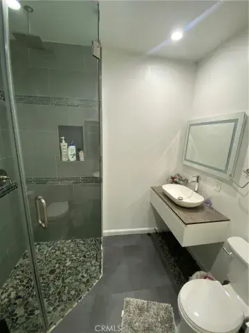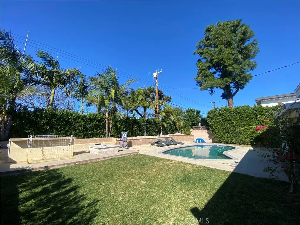 Welcome to 9767 Comanche Ave, a stunning single-story home nestled in a highly sought-after Chatsworth neighborhood. This beautifully updated 4- bedroom, 3-bathroom home spans 1,834 square feet and boasts an entertainer’s backyard, a versatile floor plan, and modern upgrades throughout. Step inside to a welcoming foyer that leads to an expansive living room with recessed lighting and views of the backyard. The updated kitchen is the heart of the home, featuring stainless steel appliances, quartz countertops, a stylish backsplash, and an open layout perfect for hosting. Adjacent to the kitchen is a formal dining area and a cozy family room with plenty of natural light, making it an ideal space for gatherings. The primary bedroom is generously sized and includes an en-suite bathroom with a sleek, modern design. Three additional bedrooms provide ample space for family or guests, with one offering direct access to the backyard, making it perfect for a private office or guest quarters. The floor plan showcases the thoughtful layout, emphasizing both functionality and comfort. The exercise room, located just off the backyard, offers endless possibilities as a gym, studio, or additional living space. The backyard is an entertainer’s dream, featuring a sparkling pool surrounded by a lush privacy hedge and tall palm trees. The built-in BBQ, fire pit with seating, and expansive patio area provide the perfect setting for hosting summer barbecues or enjoying serene evenings outdoors. The grassy area is perfect for play or relaxation, and the separate structure doubles as a gym or potential home office. This home boasts numerous updates, including new HVAC, fresh paint, modern fixtures, and upgraded flooring throughout. The property’s prime location within a quiet, family-friendly neighborhood with mountain views and proximity to top-rated schools, parks, and shopping.