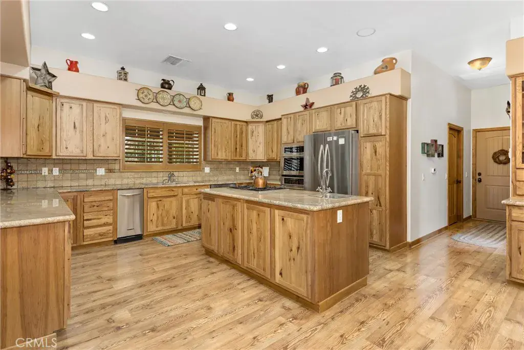 Step outside and experience true resort-style living. A lagoon-style pool serves as the backyard centerpiece, surrounded by a fully equipped outdoor kitchen, expansive covered patio, and mature landscaping. The welcoming front porch captures beautiful sunsets, and fruit trees enhance the estate atmosphere. Property includes solar that is PAID.