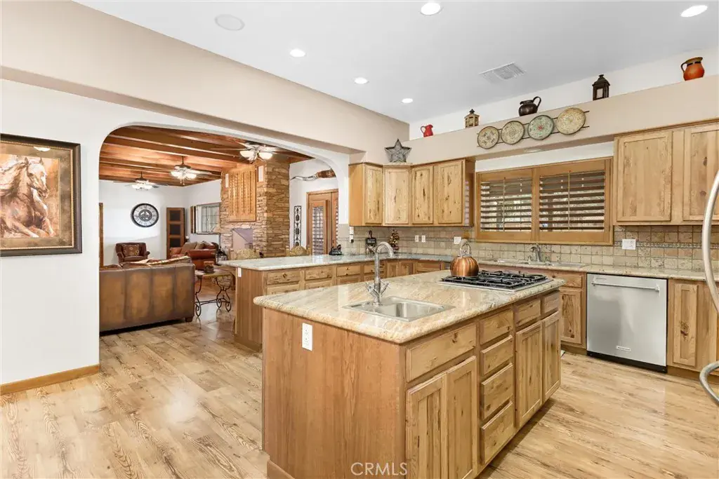 Welcome to a rare private compound in Cherry Valley offering space, flexibility, and serious utility. This custom-built 4-bedroom Southwestern ranch estate spans 4,437 square feet and sits on 1.34 flat, fully usable acres. Built in 2005, the property blends warmth, craftsmanship, and functionality in a way that is increasingly hard to find.Designed for both everyday living and large-scale entertaining, the home features expansive gathering areas filled with character. A formal dining room comfortably accommodates large celebrations, while a distinctive western-style bar creates the perfect setting to host. A dedicated library offers a retreat, and the generous upstairs living room provides flexible space for media, guests, or multigenerational living.The spacious kitchen is anchored by extensive granite countertops, abundant cabinetry, and a layout built to handle everything from daily meals to catered events with ease.The approximately 800-square-foot primary suite feels like its own private wing. A cozy fireplace sets the tone, walk-in closets and a split his-and-her bathroom configuration with full granite showers provide both privacy and function.