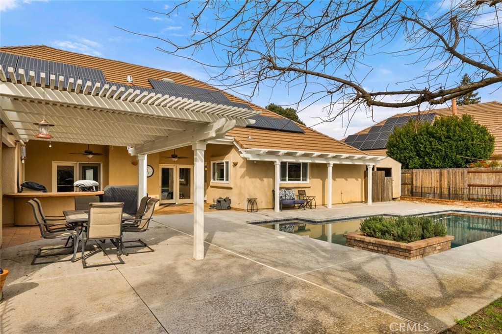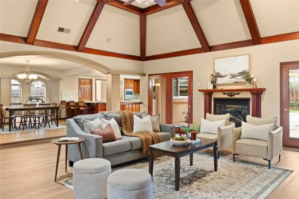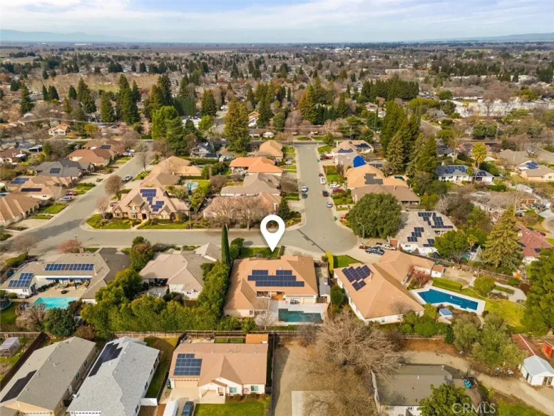 This well-built North Chico home offers thoughtful design, quality finishes, and spaces that truly work for everyday living and entertaining. Inside, you’ll find new LVP flooring throughout, architectural archways, exposed beam ceilings, and a spacious living room with a cozy fireplace. The kitchen is both functional and stylish, featuring granite countertops, custom wood cabinetry, a Wolf gas cooktop, Sub-Zero refrigerator, large center island, walk-in pantry, and breakfast bar. A formal dining room sits nearby, along with an additional formal living space that adds flexibility for hosting or gathering. A dedicated office with built-in shelving provides a comfortable work-from-home setup. The primary suite offers a private retreat with backyard access, walk-in closets, dual vanities, and a tiled walk-in shower. Three additional bedrooms are generously sized, and the home also includes ceiling fans throughout, an indoor laundry room, and an attached three-car garage. Recent upgrades include a newer furnace, air conditioning system, and water heater, adding peace of mind and efficiency. Out back, the property is designed for year-round enjoyment with a covered patio, Pebble Tec pool, outdoor kitchen and bar, plus a storage shed and garden area. Located in a desirable North Chico neighborhood, this home combines comfort, function, and standout amenities in one complete package.