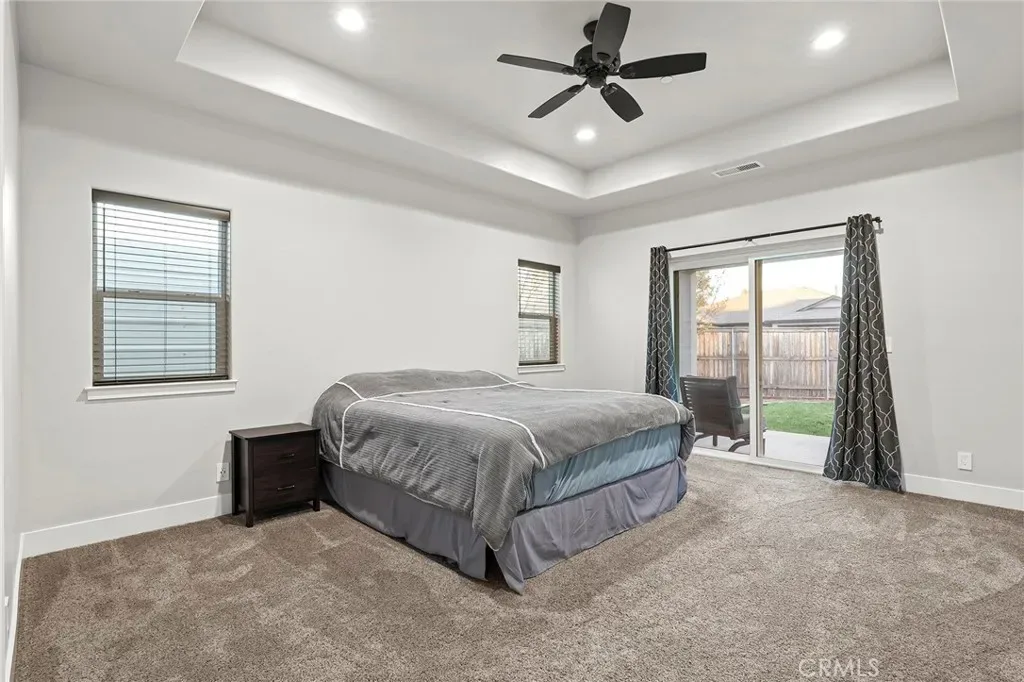 Welcome to this beautifully maintained 3 bedroom, 3 bathroom home with a spacious office, built in 2021 on a generous .28 acre lot. This versatile floor plan features two primary bedrooms, including a junior suite, making it ideal for multi-generational living, guests, or added privacy. The main primary suite offers a huge walk-in closet, double sinks, a soaking tub, and a walk-in tile shower, creating a relaxing retreat. The bright living room features a cozy gas fireplace and large windows that showcase beautiful natural views, bringing in plenty of light and a peaceful setting. The home includes durable LVP flooring throughout the main living areas with carpet in the bedrooms for comfort. Step outside to a large concrete patio, perfect for entertaining, relaxing, or creating your ideal outdoor living space. The spacious .28 acre lot offers room for a pool, RV parking behind the gate, and plenty of space to customize. Located in an established neighborhood with mature trees, this home is conveniently close to the hospital, downtown, shopping, and local amenities while still offering a quiet neighborhood feel. A great opportunity to enjoy modern construction, flexible living space, and a large lot in a desirable location.
