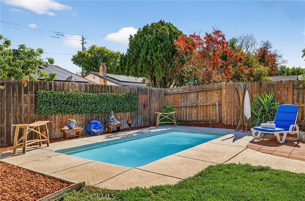 Upstairs, the private primary suite offers dual closets and an en-suite bath. Two additional bedrooms share a well-maintained second bath, offering plenty of space for family or guests. Step outside to the beautifully landscaped backyard with a covered patio and in-ground pool—perfect for enjoying all four seasons. There’s also space for your own vegetable or fruit garden, adding a personal touch to this outdoor haven. Located just minutes from Bidwell Park and within walking distance of Pleasant Valley High School, Marigold Elementary, and Bidwell Junior High, this home offers a prime location for families. Plus, it’s close to shopping, dining, and other amenities for added convenience.Don’t miss the opportunity to own this well-maintained home in a family-friendly neighborhood—it’s the perfect place to create lasting memories!