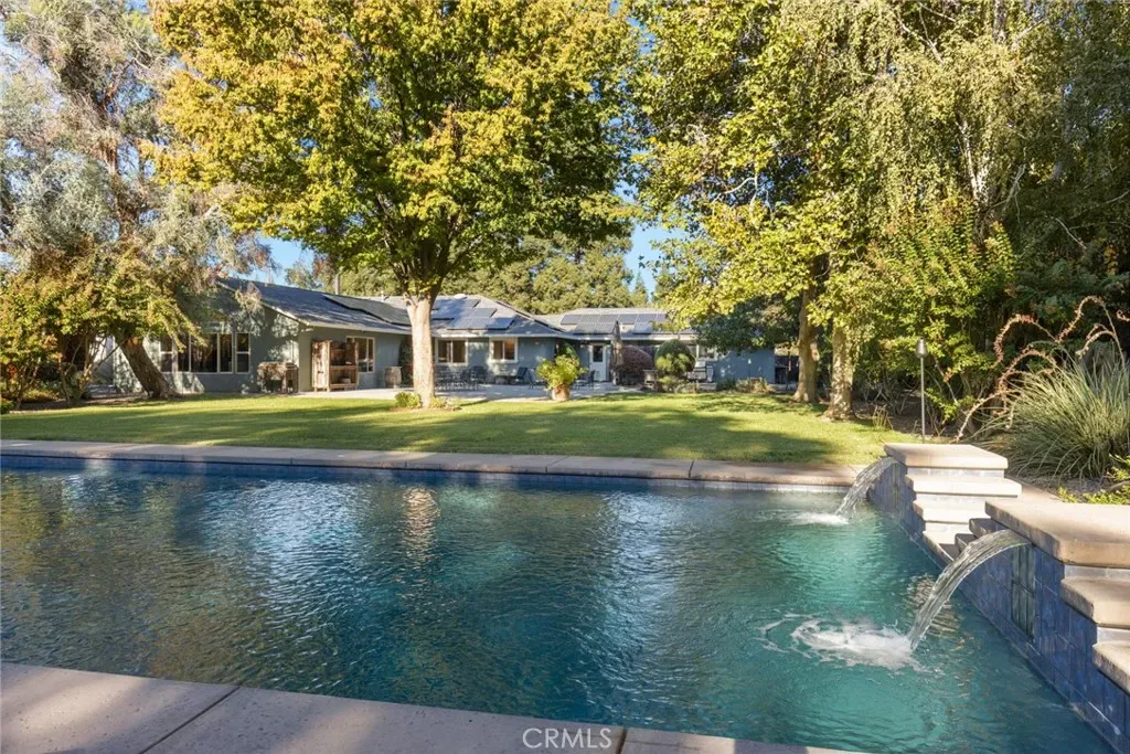 Exceptional North Chico home on an oasis like 1.48-acre parcel. Featuring 3beds/3baths plus office or 4th bed, custom wood craftsmanship and built ins throughout, gourmet kitchen with island, and a huge 24’x39′ family room with wet bar. Enjoy formal living and dining, a spa like master suite and a cozy wood-burning fireplace. Outside offers lush landscaping with an in-ground 20×40 salt water pool, outdoor shower, expansive patio, two raised garden bed areas, chicken coop, and plenty of RV parking. The 12×13 shop features both vaulted and covered concrete storage. Includes 3-car garage and 13.7KW solar system w/ generator hookup. A rare blend of craftmanship, comfort, and outdoor living. This property truly has it all! Check it out.
