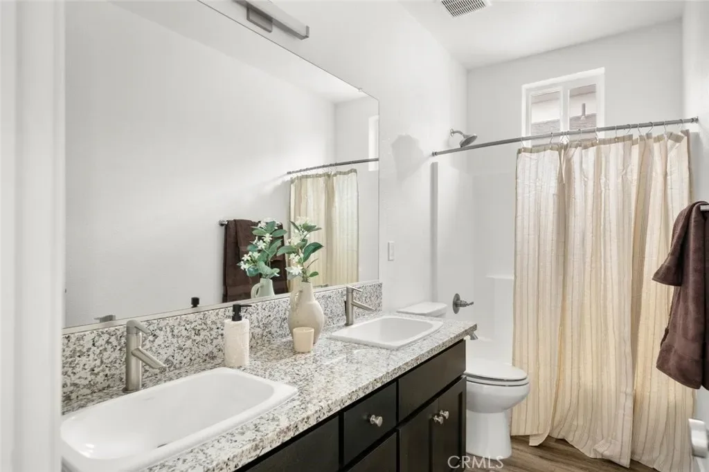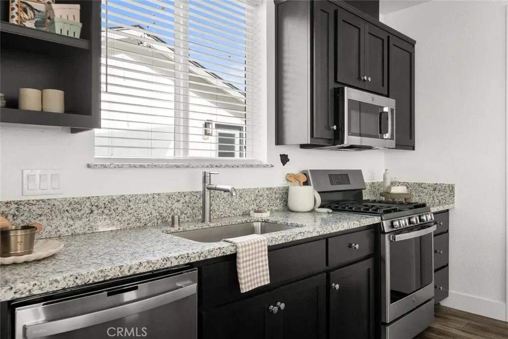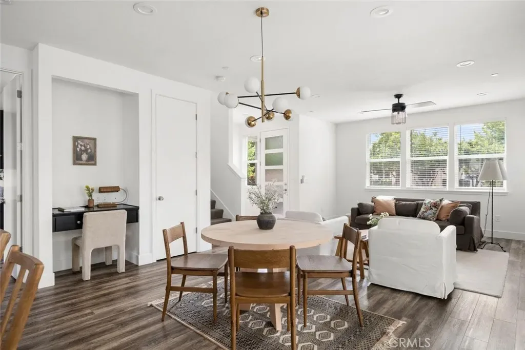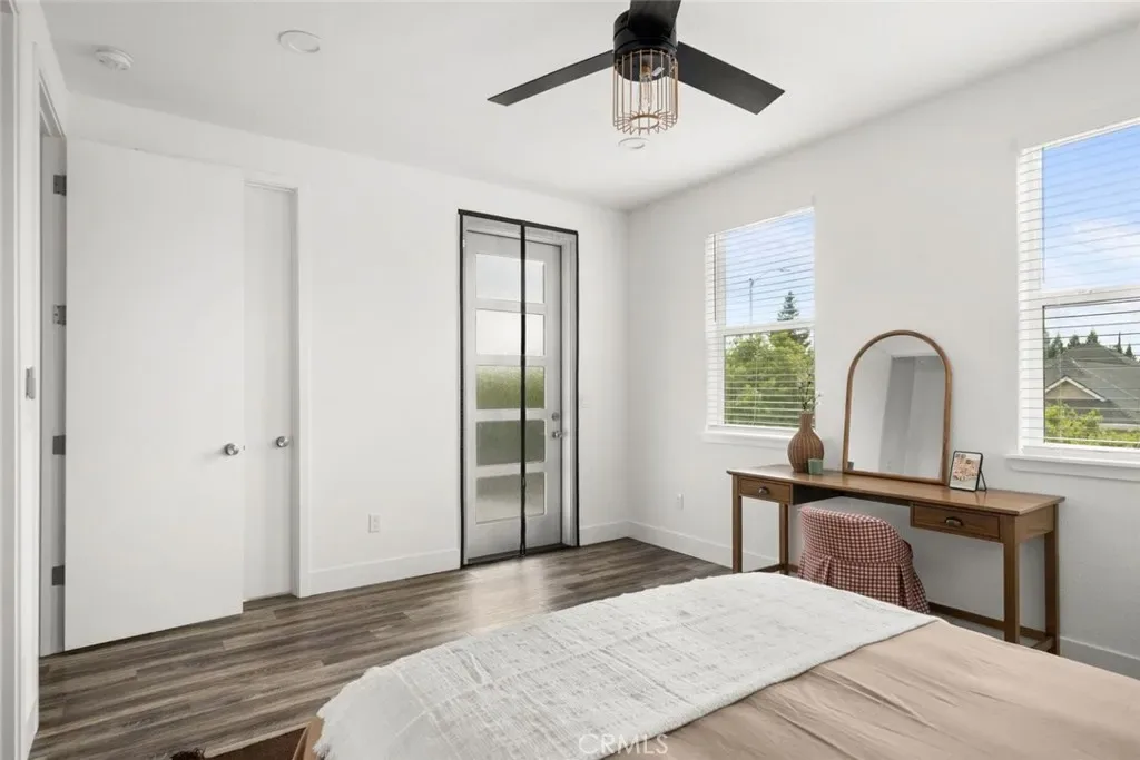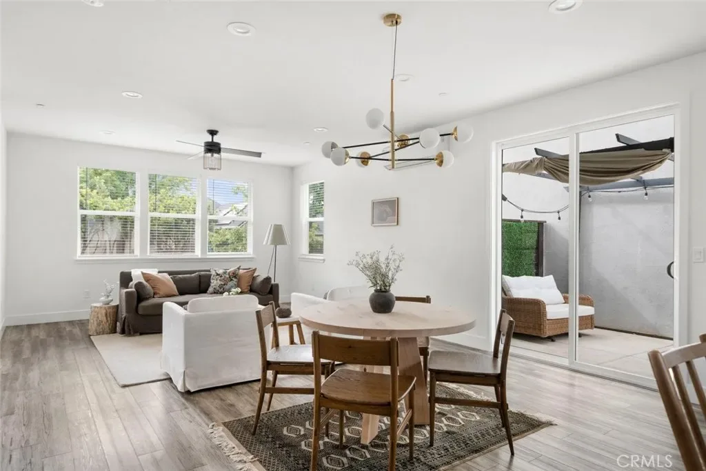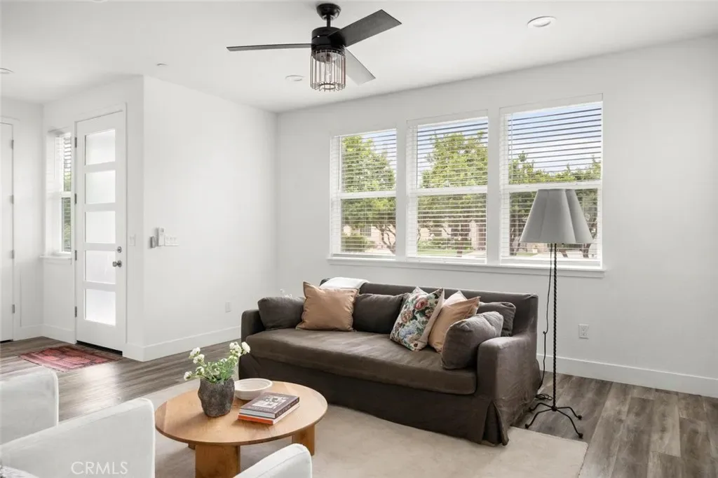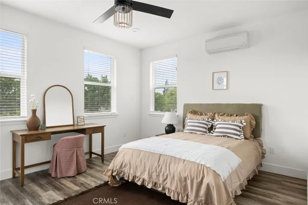 Contemporary 3-bedroom, 2.5-bathroom home in Meriam Park, minutes from Bidwell Park, Meriam Park’s retail and dining corridor, and downtown Chico. This open-concept, two-story home features lightly painted walls, recessed lighting, ceiling fans throughout, and mini-split systems for room-by-room climate control. The kitchen includes granite countertops, wood cabinetry, stainless steel appliances, a gas range, and a center island with breakfast bar seating, open to the main living area. Upstairs, the primary suite offers a walk-in closet, private balcony, and en suite bathroom with dual sinks and a walk-in shower. Two additional guest bedrooms share a full bath and provide flexible space for family, guests, or a home office. The detached two-car garage includes extra storage, and the back patio offers dedicated outdoor space for entertaining or relaxing.