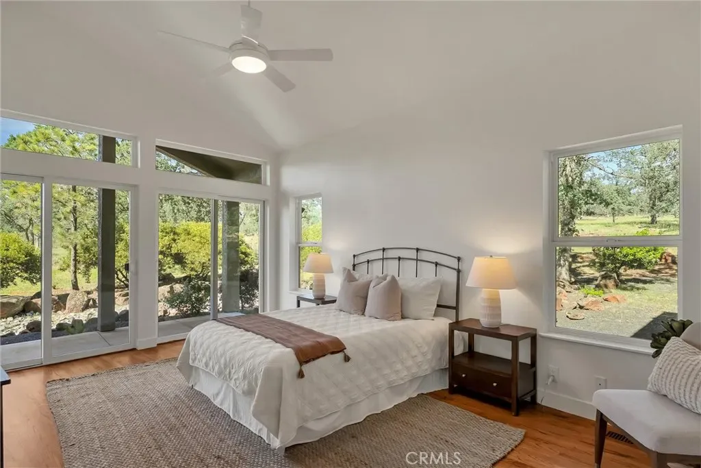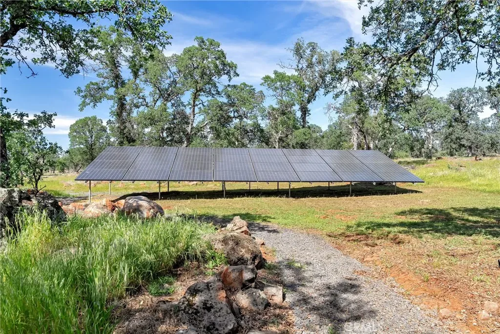This stunning 40 acre property at offers the perfect blend of luxury and privacy. Boasting a beautiful 3-bedroom, 3.5-bath home with en-suite bathrooms in each, it provides a comfortable and elegant living space. The property is well equipped with modern amenities including 32 owned ground-based solar panels and 2 Tesla Powerwalls, ensuring energy efficiency and sustainability. The remodeled kitchen features honed granite countertops, a built-in refrigerator, and custom cabinetry from Chico Wood Craft. The master bath includes a heated floor and curbless shower entries, adding to the home’s luxurious feel. Additional highlights include hot water recirculating system, a built-in pellet stove with thermostat, hardwood floors throughout, designer light fixtures, and automatic irrigation. The home also features a Big Ass ceiling fan in the living room and two patios for outdoor enjoyment. For those with hobbies or projects, the property offers a small shop with an air system in the garage, cabinets, workbench, and an electric car charger. Outbuildings include a well house, Tesla Powerwalls, and a shed. The gated access, private road, septic system, and AT&T fiber and WiFi ensure privacy and convenience. The Homeowners Association fee of $700 a year covers the gate and road maintenance, adding peace of mind. Don’t miss the chance to own this exquisite property in a serene setting.