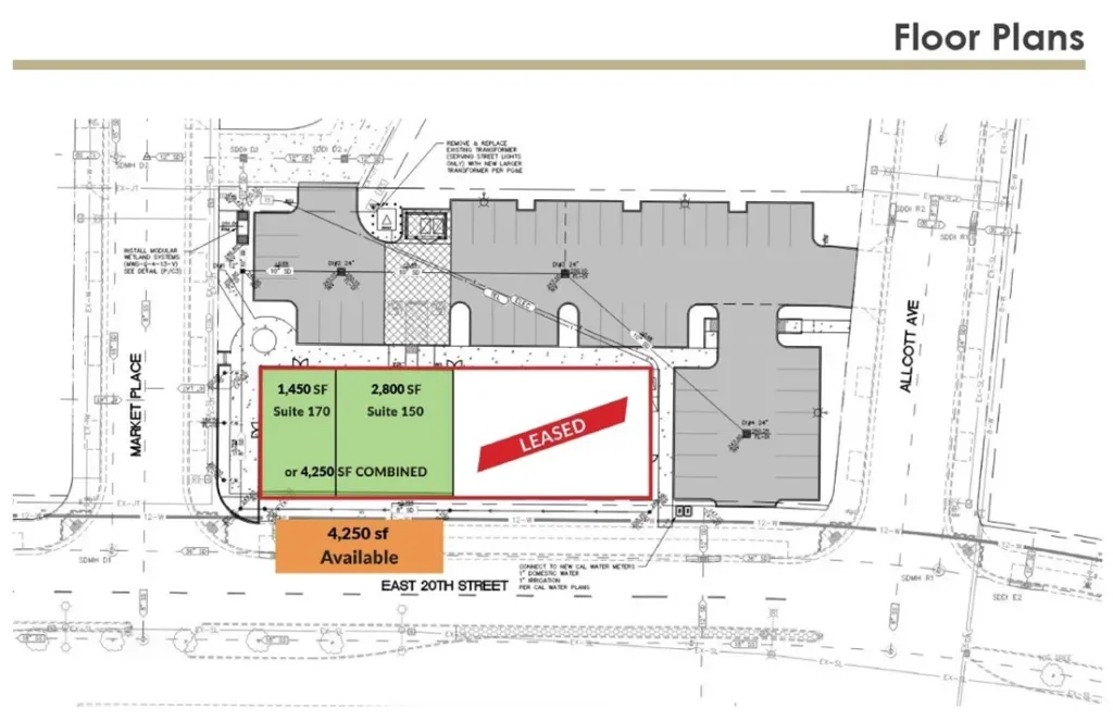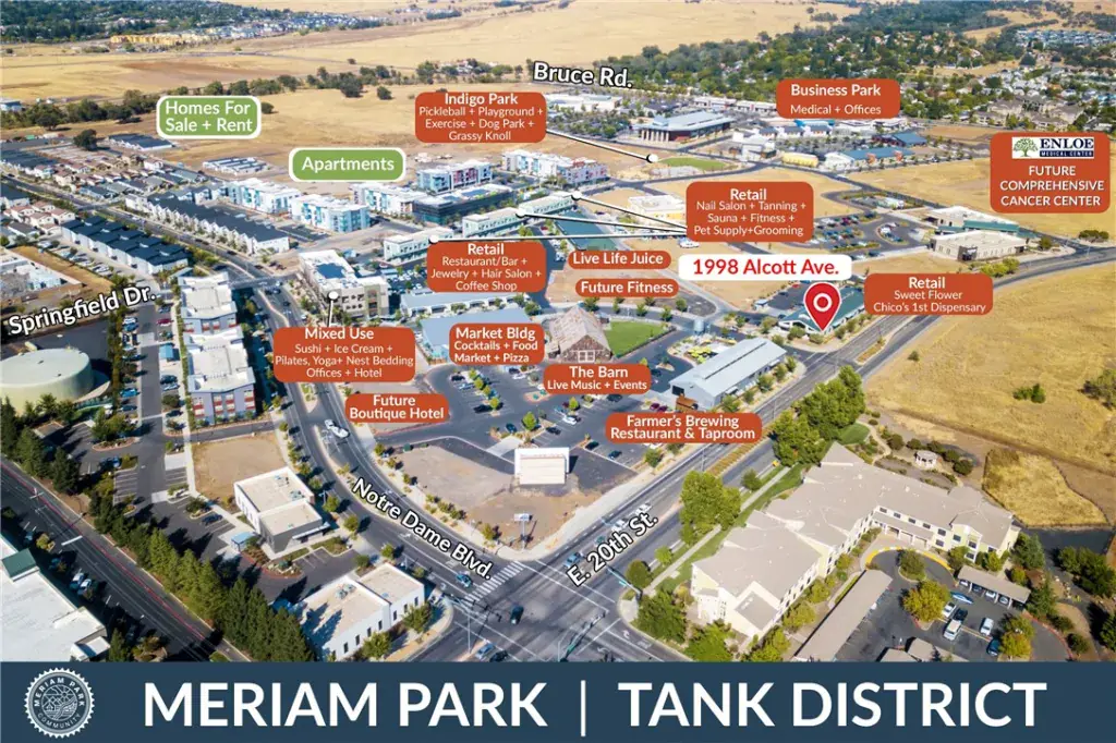 Prime corner retail building on E.20th Street (22,000 ADT) between Hwy 99 and Bruce Rd. within Meriam Park, a 270 acre master planned community with a balance of residential, retail, commercial businesses, and social gathering spaces. This unique end cap retail location is next door to Sweet Flower, Chico’s first dispensary with high daily traffic, directly across from Farmer’s Brewing Co. Restaurant & Taproom and in walking distance to shops, restaurants, social gathering spaces, events, parks, office and medical spaces, homes and more. The entire available space is 4,250sf but could be divided into two separate spaces (2,800sf & 1,450sf – contact agent for rental rates for the separate spaces). The space is currently in a cold shell condition. A Tenant Improvement allowance will be provided by Landlord.