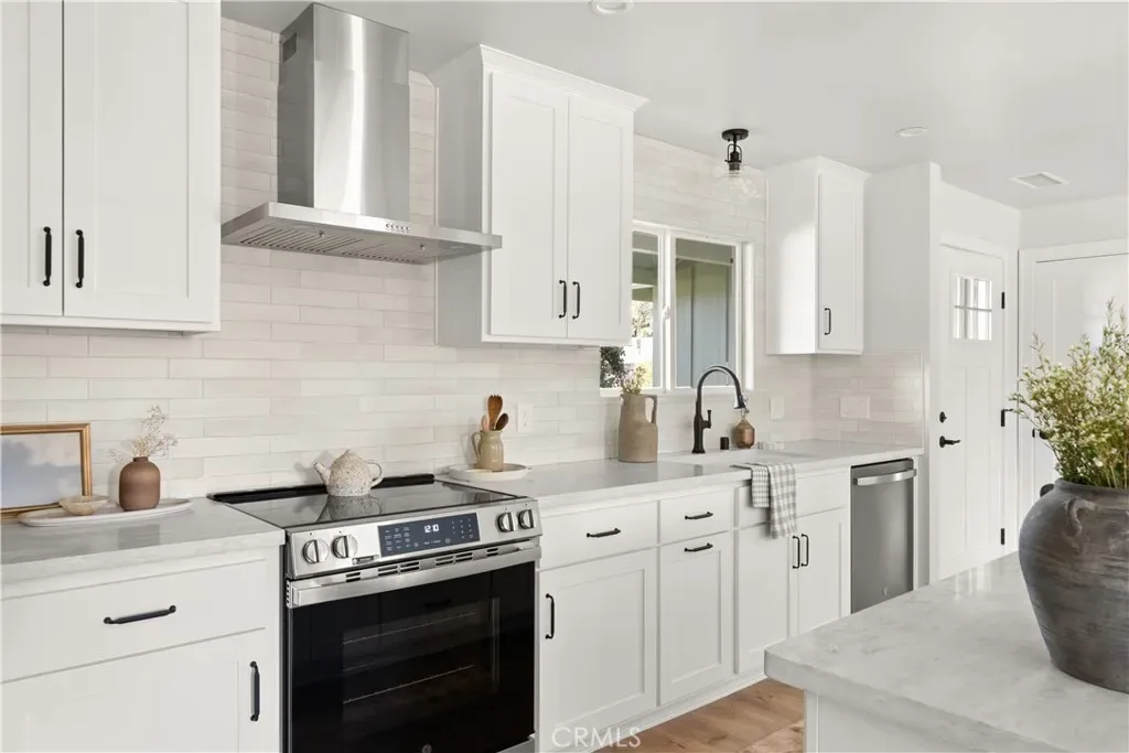 99% new! This brand new home is tucked away in an established neighborhood and has been taken down to the studs and floor plan has been reimagined for a modern look and feel. From the moment you step inside, you’re welcomed by a desirable open-concept layout, freshly painted walls, brand-new laminate flooring, and new windows that fill the space with warm, natural light. The spacious living room offers the perfect setting for cozy movie nights or gathering with friends and family. The fully renovated kitchen is a true showstopper. Thoughtfully designed with all-new stainless steel appliances, sleek quartz countertops, elegant white cabinetry, and a distinctive tile backsplash, it effortlessly blends style and function. An electric cooktop with a modern range hood and a large center island with breakfast bar seating make this space ideal for everything from quick morning bites to entertaining guests. Retreat to the expansive primary suite, where comfort meets luxury. This serene space features a generously sized closet and a spa-inspired ensuite bathroom complete with a new dual-sink vanity, ample linen storage, and a beautifully tiled walk-in shower. Additional highlights include ceiling fans throughout, updated fixtures, a new water heater, brand-new HVAC system, two spacious guest bedrooms, a fully remodeled guest bath, an indoor laundry room, and a large 30ft deep two-car garage. Step outside to enjoy a backyard designed for relaxation and fun, offering a patio area perfect for barbecues and plenty of lawn space for outdoor games or pets to roam freely. Conveniently located near everyday amenities, this home has been taken down to the studs and rebuilt better than ever. Don’t miss your opportunity to make this turnkey gem your own!