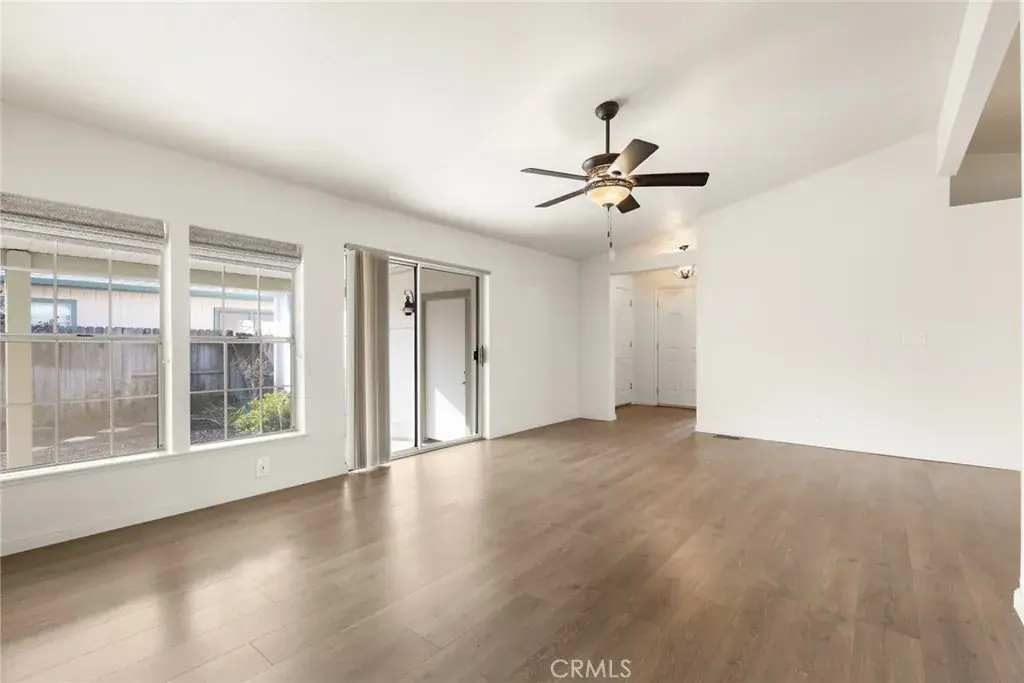 Located within a gated 55+ community, this clean and move-in-ready home at 2050 Springfield Drive, Unit #212 offers comfortable, low-maintenance living in a highly convenient Chico location. Enjoy close proximity to shopping, restaurants, services, and all that Meriam Park has to offer. Inside, the home features luxury vinyl plank flooring throughout and a thoughtfully designed split floor plan. A guest bedroom and full bathroom are located at the front of the unit, providing privacy and flexibility for visitors or a home office. The primary suite is privately situated at the rear of the home, featuring vaulted ceilings, a walk-in closet, and sliding glass doors that open to the covered back patio. The primary bathroom offers double sinks and a step-in shower. The kitchen is both functional and inviting with granite countertops, stainless steel appliances, skylights, and an abundance of natural light. A stylish barn door leads to the indoor laundry room, where the washer, dryer, and refrigerator are included. Multiple linen closets throughout the home provide excellent additional storage. Additional highlights include vaulted ceilings, ceiling fans, central heat and air with a newer heat unit, an attached garage, and a large covered patio and low-maintenance landscaping—perfect for relaxing or enjoying the outdoors year-round.