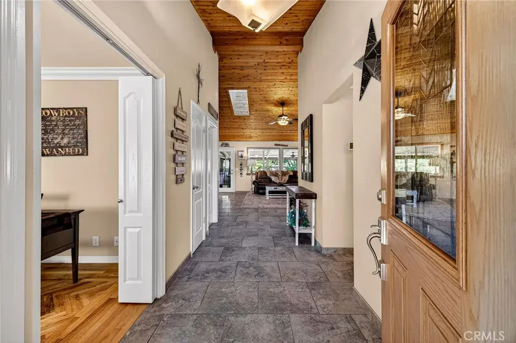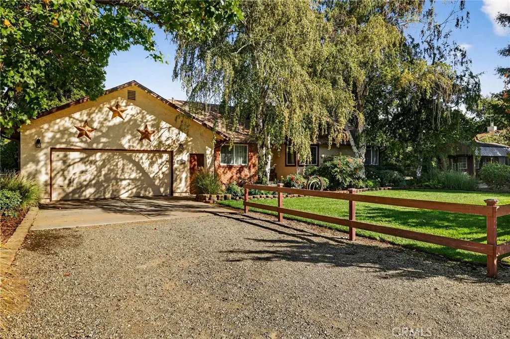 Tucked in the countryside just minutes from town, Roseanna Ranch is where modern comfort meets peaceful country living. This stunning 2.04-acre property has been lovingly renovated and designed for those who dream of wide-open spaces, horses in the pasture, and sunsets over the arena. The beautifully remodeled farmhouse spans approximately 2,100 sq. ft. with 4 bedrooms and 2 bathrooms, offering the perfect blend of rustic charm and modern sophistication. Inside, Italian tile flows throughout the main living spaces, luxury vinyl plank flooring accents the bedrooms, and custom wood flooring adds character to the first floor. The spacious living room features a vaulted knotty pine ceiling with skylights that fill the home with natural light, while an efficient Heat Tech wood stove adds cozy ambiance. The kitchen is a showpiece with quartz/Cambria countertops, stainless steel appliances (new in 2019 & 2023), a garden bay window, and a dining room addition with skylights and built-in china cabinets. The primary suite includes a walk-in shower, a walk-in closet, and elegant finishes. Updates include new doors and windows, crown molding, a whole-house vacuum, fan, Culligan water softener, filtration system, and a new HVAC unit. Step outside and fall in love with the fully fenced and gated acreage, featuring manicured lawns, redwood, birch, crepe myrtle, and maple trees surrounded by colorful perennials and blooming roses. A solar-heated pool with a large patio area provides the perfect setting for entertaining, while raised garden beds and a fenced orchard offer a touch of farm-to-table living. For equestrian lovers, this property is a dream come true. The two-stall barn features paddocks, a tack room, hay storage, a large farm sink, a full bathroom with hot water, electric fans, and washer/dryer hookups. A 110’x120’ riding arena with sprinklers and excellent footing sits beside a half-acre pasture with irrigation and RV or trailer storage. There’s also a chicken coop, fenced garden, and space for tractors and equipment. A 12’x24’ detached studio with split HVAC, insulation, and electric is perfect as an art studio, office, or guest space. With 40 owned solar panels on the barn, a new well pump and casing (2023), and Byers LeafGuard gutters, this property offers beauty, efficiency, and peace of mind. Roseanna Ranch is more than a property; it’s a lifestyle of comfort, connection, and country charm just minutes from town and local schools.