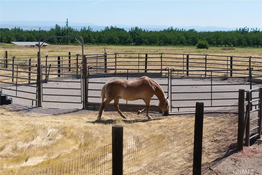 Well thought out equestrian estate on the western edge of Chico – opportunities for property like this don’t come along often! There are five level acres with a covered arena, a six stall, 100′ long, horse barn with a tack room, bathroom, heated wash rack and hay storage area! The property has been fenced into 8 irrigatable pastures, with 6 additional runs off the barn, a round pen, and then the 2,068 sq.ft. custom home at the corner of the property. Each pasture is fenced with no climb horse fence and has water and sprinklers available, not currently irrigated. Drive up the lane to the custom three bedroom, two bath home, was built in 1988 and has only had one owner. The living room has vaulted beam ceilings, a brick hearth and propane fireplace. There is a formal dining room, with a slider to a cool and shady covered patio that runs the length of the north side of the home. The kitchen has tile floors, Corian counters, oak cabinets and stainless fridge, with a bay window above the sink, overlooking the private side yard. A light and bright breakfast nook overlooks the front yard, pastures and towards the barn. The primary bedroom has a walk-in closet next to the primary bath, and it’s own slider leading to the back patio. The yard is nicely landscaped, auto sprinklers and behind it there is a small orchard, grapes and plenty of room for a spacious garden. The property has a gated entrance, two wells and the barn has it’s own septic, with RV hookups. Both septics have just been pumped. There is also a Generac generator for the house, in case of power outages. In just two minutes, you can be back in Chico and picking up groceries at Safeway. CA State University Chico and Enloe Hospital are both within a few minutes drive. A couple miles to the west of the property, the Sacramento River meanders south, offering a wide variety of fishing opportunities. If you’re looking for a lovely equestrian property and home, not far from town, please schedule your private tour!