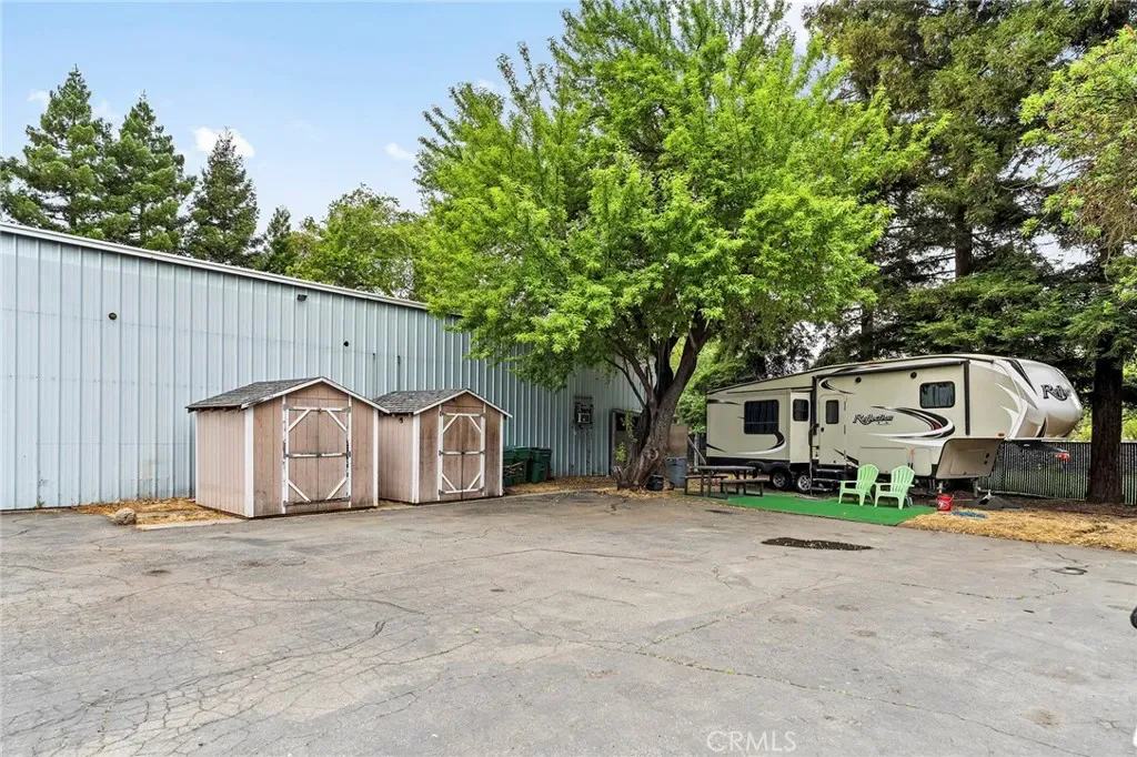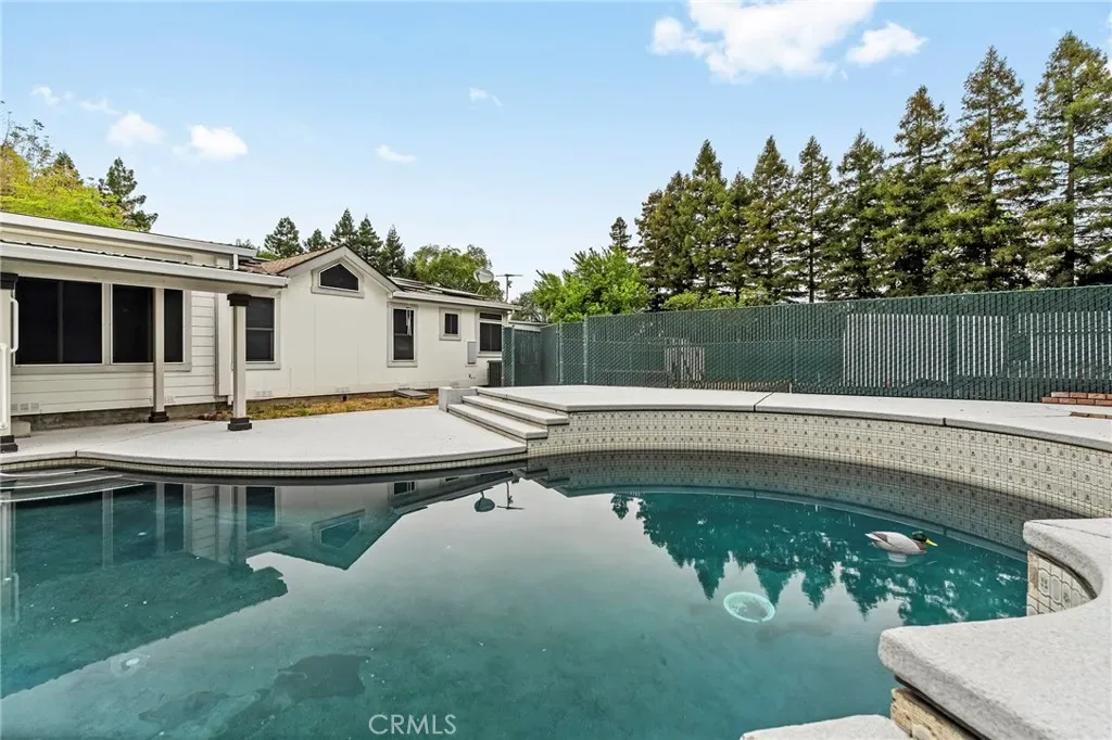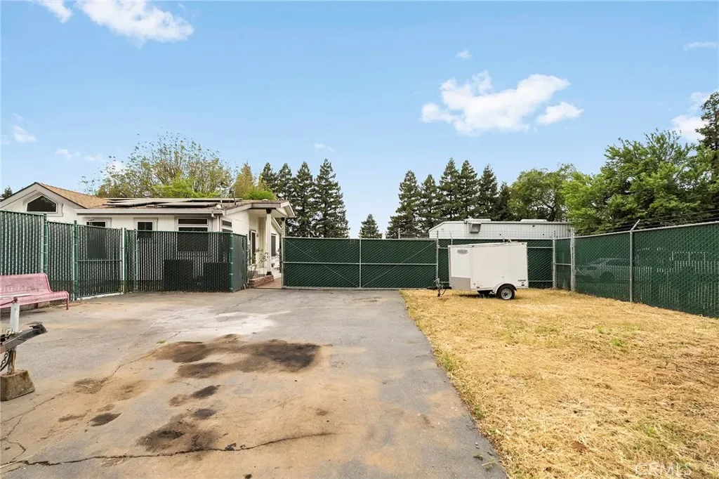 This expansive Chico property is powered by an impressive 86 panel solar energy system. The sparkling gunite pool that will keep you cool in the summer is accompanied by a multitude of RV hookups with 30/50 amp power and dedicated septic making this home an incredible place to host large get togethers. Sitting on a spacious .76 acre lot, this 2,782 SF manufactured home built in 2001 offers warm real wood floors and bright solar tubes that fill the interior with natural light. Two owned propane tanks and an oversized garage with extra electrical capacity make this property as functional as it is comfortable. Outside, a fenced equipment yard provides secure storage, while the stunning English walnut tree adds classic curb appeal to the front yard. With plenty of room to add an ADU, the possibilities here are wide open. Additional features include an oversized HVAC system, walk in tub, high end screened storm doors and enough parking for all your boats, trailers and toys.
