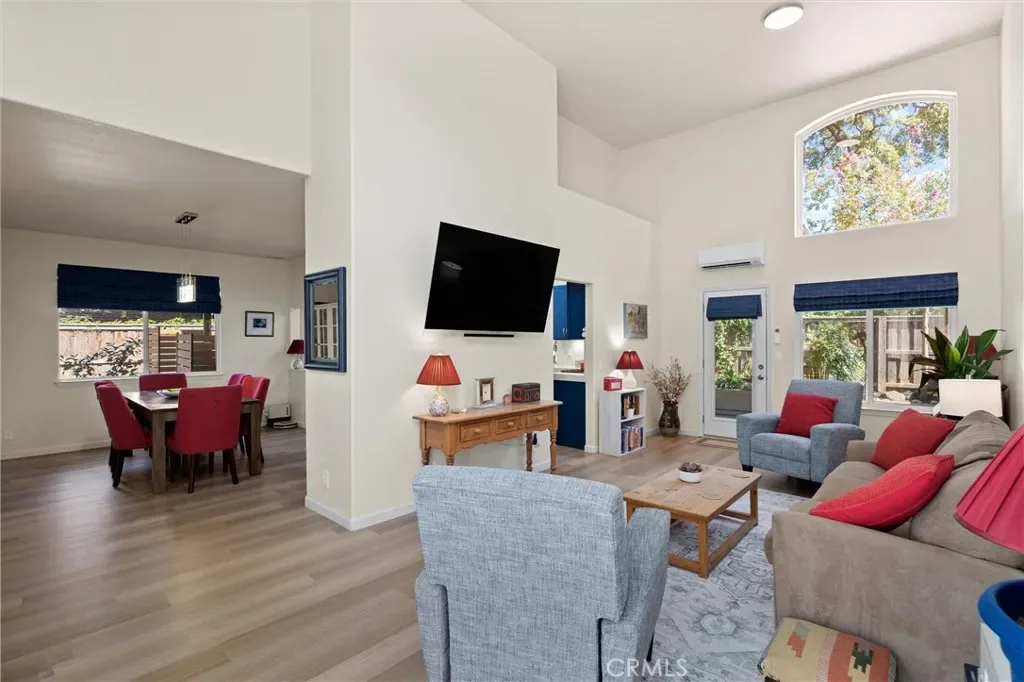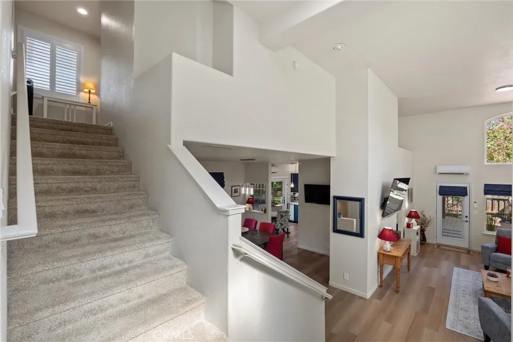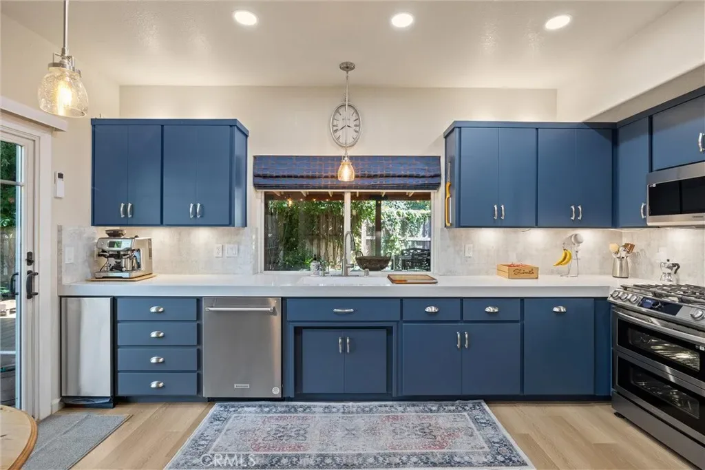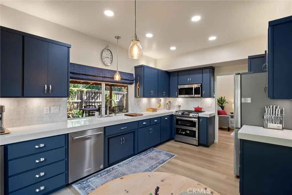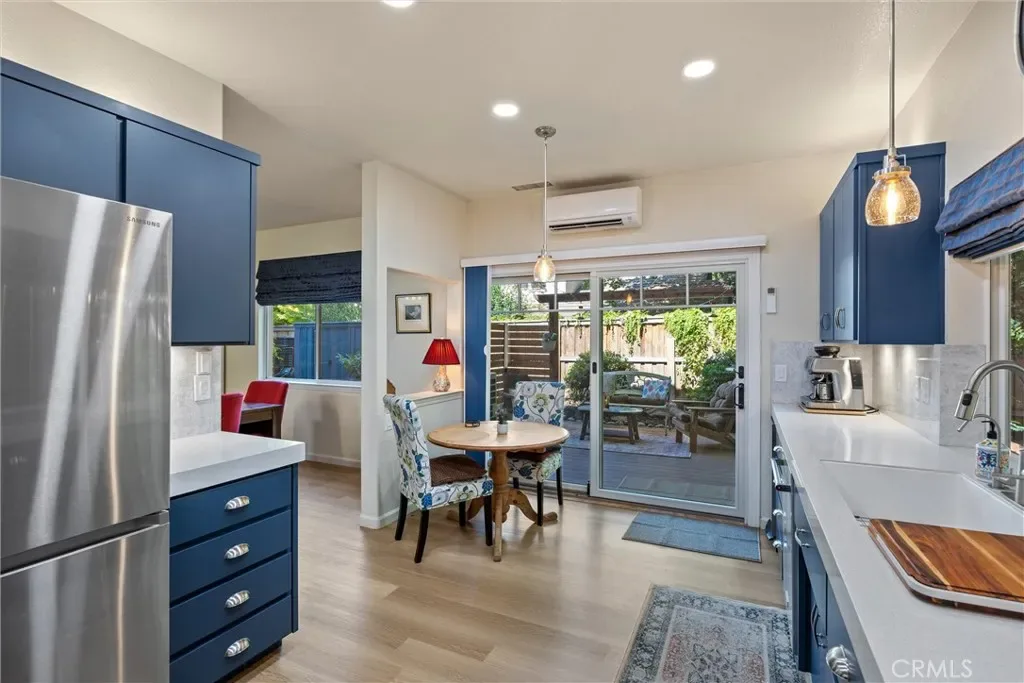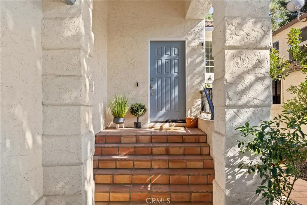 You will love this beautiful, updated home in Mission Ranch, a highly sought-after Santa Barbara-style community featuring a thoughtfully designed circular street seamlessly connecting the neighborhood. Sitting on a corner lot along the Lindo Channel’s walking path, this property only has one shared neighbor/fence. The iron-gated front courtyard creates a secluded feel as you approach the home. It provides an additional charming spot to enjoy your morning coffee with its aged terracotta tile, wall fountain, & cafe table. Step inside & be immediately captivated by the home’s most remarkable feature: extensive windows that frame the breathtaking beauty of the surrounding trees & gardens. Here you will find a split-level floor plan with the main living areas downstairs & 3 bedrooms upstairs. The large living room boasts two-story ceilings & windows beautifully shaded by magnificent oak trees. A separate dining room sits off the kitchen, where you also have a dining nook. The kitchen has been upgraded with soft-closing cabinet doors & drawers, quartz countertops, a modern backsplash, & reverse osmosis drinking water. The Samsung range & refrigerator are state-of-the-art Smart Appliances. You’ll appreciate having remote control from your phone & their flexible functionality. The downstairs level also offers you a guest bath & laundry room. Upstairs, the primary suite is very spacious. It has room for a desk or sofa & lots of windows with treetop views. The primary bedroom’s en-suite bath has been remodeled. It now features a spacious walk-in shower with a bench, a traditional wall showerhead, & a rain-style showerhead. The original out-sliding windows have been replaced with decorative, opaque single fixed panes for enhanced privacy & aesthetics. Additionally, a new door was installed to offer privacy from the bedroom. The additional two upstairs bedrooms share a hall bathroom with a full bathtub/shower. Now get this… all of the toilets are Smart! They offer various hygiene options & automatic features. Now step outside & let’s tour the new upgrades in the backyard. The new decking has power & water for irrigation & lighting, making landscaping & maintenance easy. Additionally, the rear deck features a full patio roof, offering protection from the sun & shelter from rain. For added peace of mind, Ring Cameras are installed on the porch, driveway, & both sides of the deck. Please ask if you are interested in any of the house or outdoor furniture.