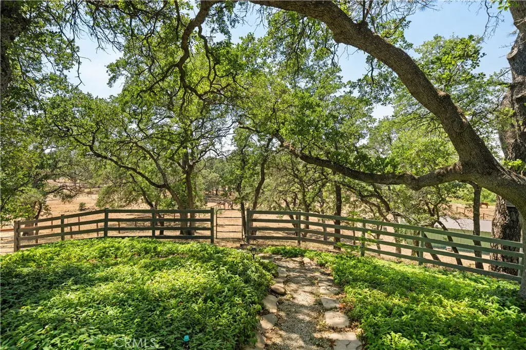Let your North Chico house hunt stop here! Sitting on over 3 acres, this custom built home is in a private setting among the oak trees set far down a private drive with lots of amazing features. You’ll immediately be drawn to the warm, vaulted tongue and groove ceilings that run throughout the main living and dining area. You will notice all of the windows capture the natural beauty of the terrain. The living room features large windows looking out to the back yard allowing for plenty of natural light, high ceilings, a cozy fireplace, and a custom built-in set of shelves. In the kitchen the same custom cabinetry compliments the bright white quartz counters, tile floors, and stainless steel appliances. Off the kitchen is an oversized den with a wet bar, stacked laundry, and garage access. The two guest bedrooms with a shared bathroom are situated downstairs. Up the stairs is a landing with a home office area and the master suite just beside. The master suite is very spacious and is truly a retreat with views of the property out every window! There is a walk-in closet, ensuite bathroom with tile shower and large vanity with lots of counter space. Outside is where the best features of the home truly shine, including the expansive deck with hot tub! This is the perfect space for entertaining, sipping morning coffee, or simply sitting and listening to the birds chirp. On the rear, lower part of the property, there is a new two stall metal horse barn with pen while the entire property is cross fenced making this property perfect for any other livestock or furry friends. Other notable features of the property include a newer tankless hot water heater, new exterior paint, roof under 10 years old, gutter guards to reduce annual leaf maintenance, mature landscaping with automatic sprinklers, a storage shed, and a paved driveway. This property is truly unmatched with the one-of-kind design and privacy just waiting for you to call it home!
