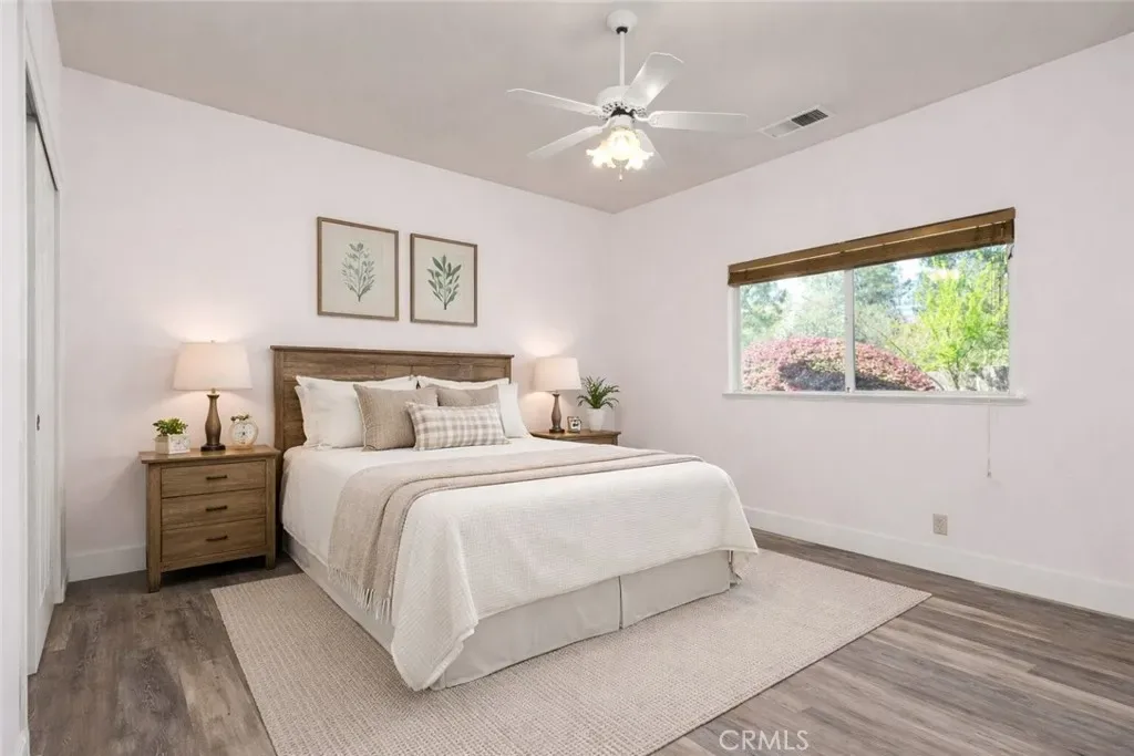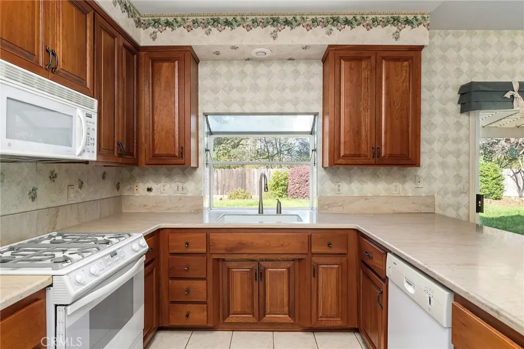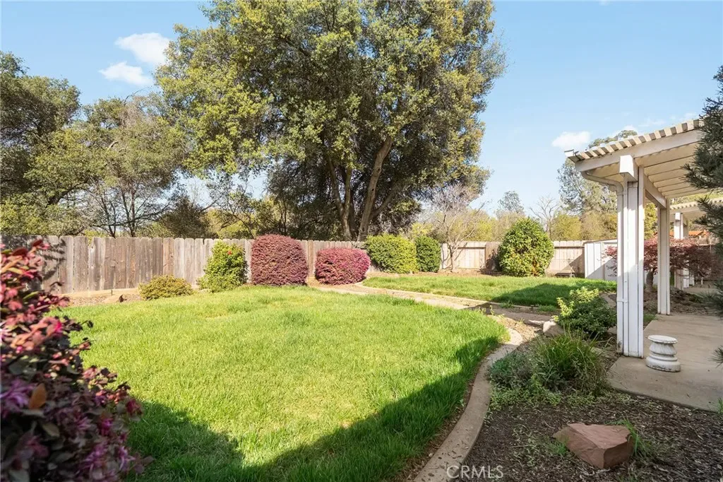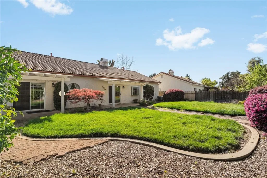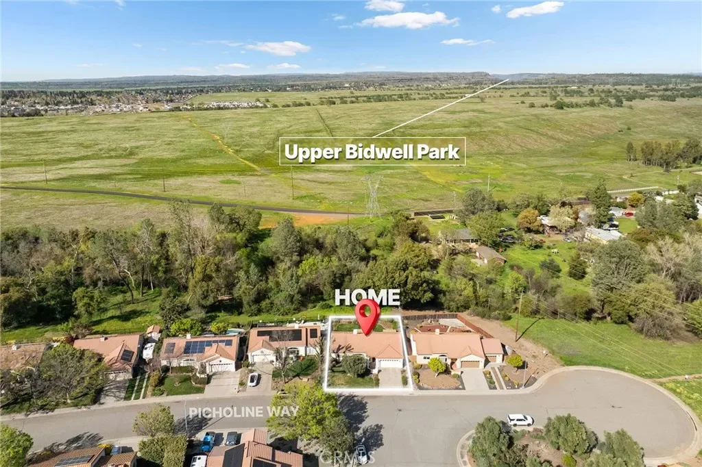 Situated at the end of Picholine Way with endless nature trails at your fingertips, this is the perfect place to call home! As you enter, you are greeted by a large vaulted ceiling with lots of natural light pouring in through the large picture window, a cozy gas fireplace, and new luxury vinyl flooring that runs throughout the living space and bedrooms. The split floor plan is ideal with the guest bedrooms and bathroom located on one side of the home and the primary suite on the other. In the primary bedroom there is a large walk-in closet, an en suite bathroom with a tub, dual sink vanity, and walk-in shower. In the kitchen there are solid surface counters, warm wood cabinetry, and a dreamy garden window that looks out on the backyard and Little Chico Creek. The yard is unbeatable with direct access to the creek allowing you to immerse yourself with nature. You can enjoy the tranquil sounds of the creek from your back patio while sipping your morning coffee or walk out your front door and be on a trail in a few steps. Other notable features include a tile roof, indoor laundry, an abundance of storage, and mature landscaping including a lemon tree and olive tree. Being located at the end of the street all while being close to schools, Mariam Park, and shopping, makes this the perfect blend for Chico living.
