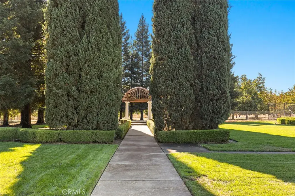 The second level has 4 bedrooms each with their own bathroom, provide ample space for family & guest. Plus a large game room with a bar area, fireplace & French doors that open to a balcony that overlooks the amazing backyard! The outdoor area is a true paradise, featuring a beautiful sparkling pool, perfect for relaxation & entertaining. The outdoor kitchen is a chef’s dream, equipped with top of the line appliances & multiple entertaining areas. The large covered patio extends across the back of the home, rose gardens, row of Cypress Trees that features an ornate iron gazebo. You & your guest will enjoy the professional basketball/tennis court. This is truly a one of a kind estate that features 3 bedrooms on the first floor & 4 additional on the 2nd. floor. It is surrounded by approximently 7 acres of English Walnuts. Within minutes to downtown Chico, CSUC & many outstanding restaurants. This property offers a unique blend of privacy & luxury, making it an ideal retreat for those seeking a premium lifestyle in a serene setting amongst other luxury estates.