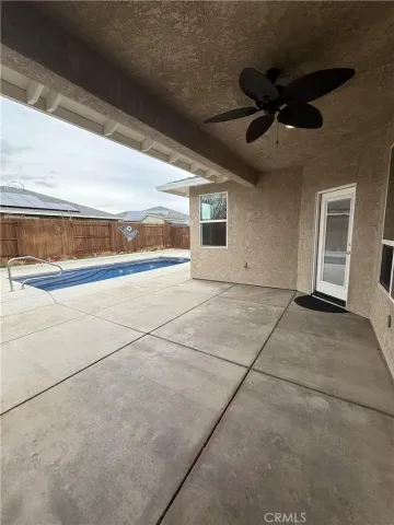Beautiful 2019 Bill Webb home with custom built inground saltwater pool that is move-in ready. Features include owned solar, an open floorplan, vaulted ceilings, granite countertops, kitchen pantry, eating bar, dining area, a focal place fireplace, gas stove top, tankless water heater, custom cabinetry, decorator tile and new carpet. Master bedroom is a retreat with lots of storage, closets, vaulted ceilings, and a private access to pool area and backyard. Spa ready and there is even a rare side yard big enough for parking for extra vehicles, rvs, or boats, depending on size. Delight your green thumb with raised garden beds and a green house. Sit under the covered patio to enjoy hot summer days while playing in the low maintenance pool. The large 2 car garage is finished and has with premium flooring. To top it all off, this home is only 3 doors down from the popular Hartley Park open space, playground, and walking path. The new Aquatics center is being built less than 1/2 mile away, popular schools and restaurants nearby too.