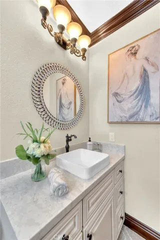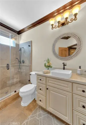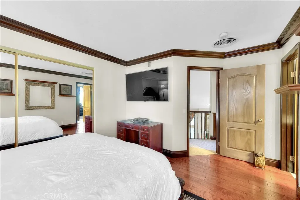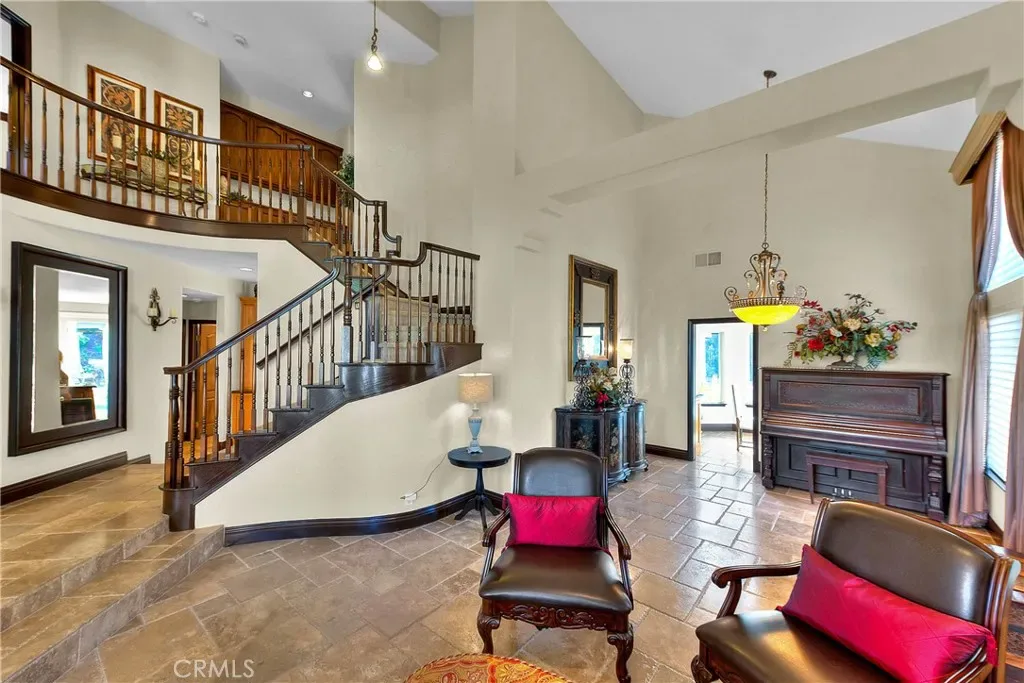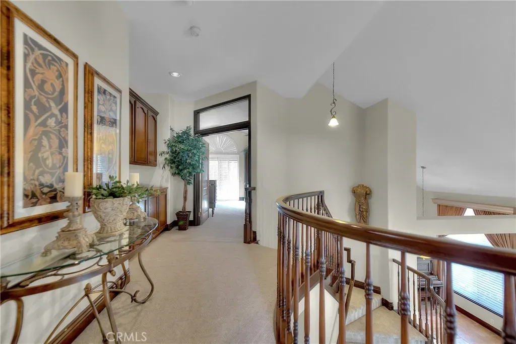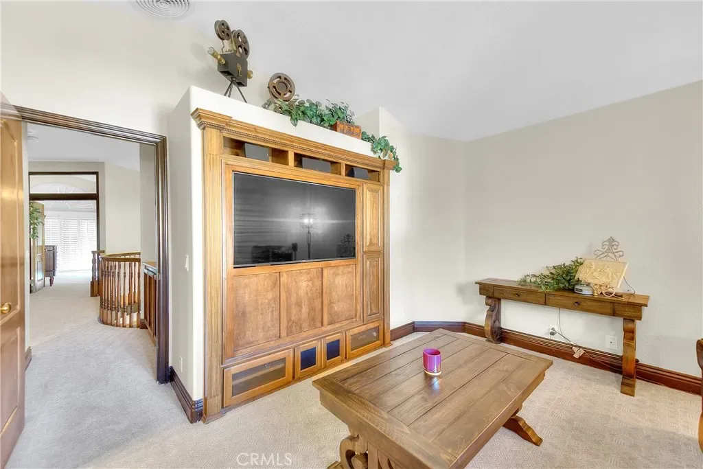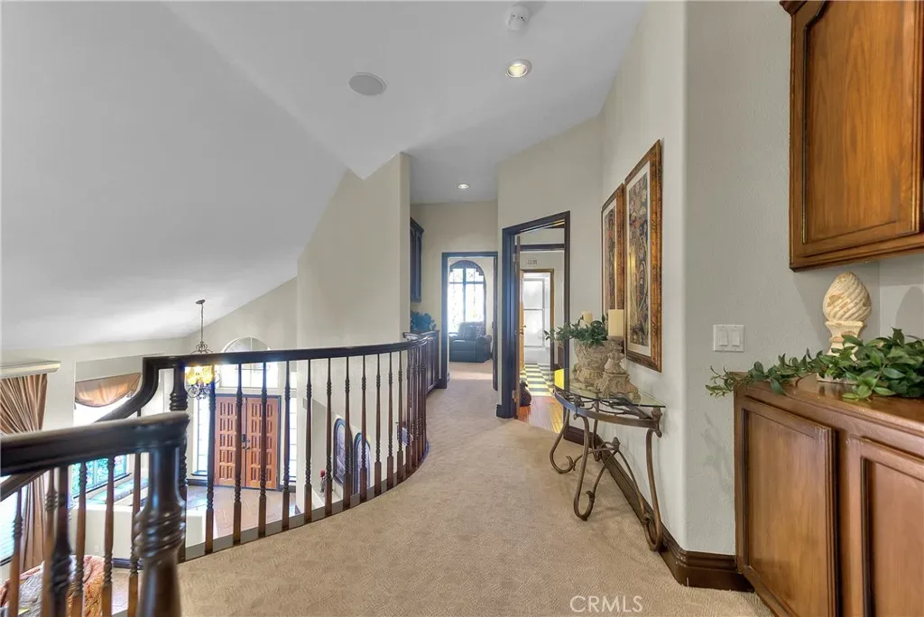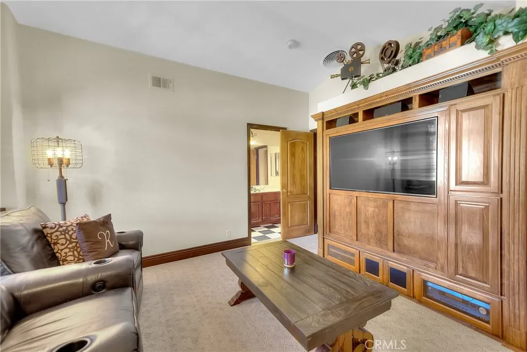 With high quality upgrades throughout, this super clean property with meticulous detail is a must see! The sellers are original owners and pride of ownership is obvious as you step in the door. With its impressive cathedral ceilings, beautiful staircase and marble framed fireplace, the entry is a stunner! The warm and inviting kitchen has a spacious island, walk-in pantry, butler’s pantry and cozy breakfast nook. The bedroom downstairs is being used as an office but can easily be converted back to a guest room. The upstairs area includes a large primary suite with a newly remodeled bathroom, walk-in closet, and a balcony overlooking the backyard, a comfortable guest room with an attached Jack and Jill bathroom, and a bonus/TV room with surround sound and theater chairs for your special movie nights.