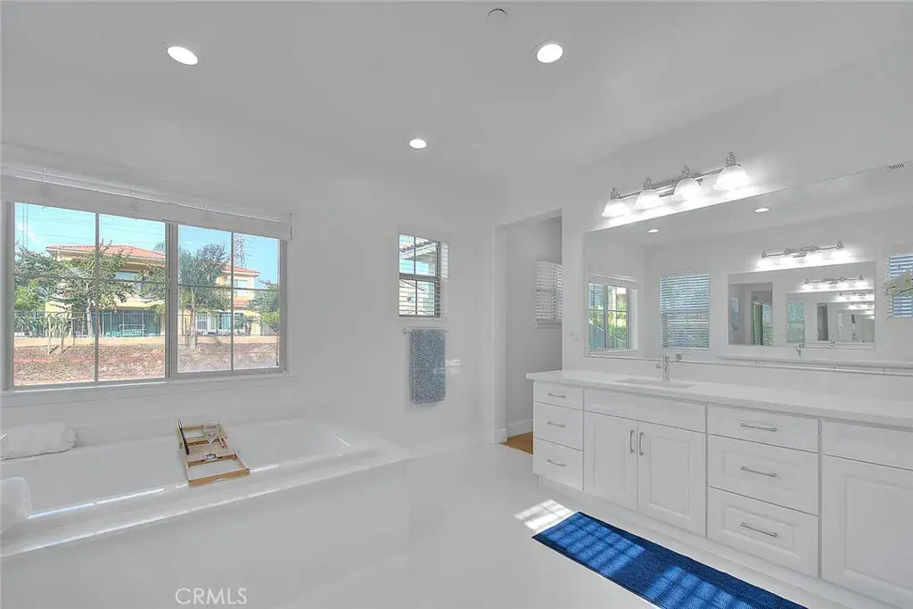 STUNNING Chino Hills pool/spa home located in the desirable Villa Borba community! Boasting 3093 of interior square footage including 4 bedrooms, loft & 3 1/2 bathrooms. Fantastic oversized lot is 10,206 square ft. (size per tax roll) Impressive interior has a contemporary flair w/elegantly selected finishing touches. A well thought out floorplan features a spacious “Great Room” aesthetic with a large family room that opens to a GORGEOUS kitchen & informal eating nook. The music/sitting room could be used as a formal dining room if desired. DRAMATIC upgraded white tile flooring downstairs adds glamour & brings a visual lightness to the first story. Convenient downstairs bedroom for guests or in-laws. There is a 3/4 bathroom adjacent to the downstairs bedroom, also a powder room for guests on the lower level. The guest bathroom has a sizeable walk in shower w/beautiful custom tile detailing. Seller removed all the standard builder materials & installed new cabinets & quartz counters throughout. Gourmet kitchen is impressive! Light & bright white cabinetry, an abundance of counter space to work including the center island which has bar top dining & loads of room to prepare & serve meals. Custom backsplash adds a pop of color & nicely compliments the quartz counters & white cabinetry. WONDERFUL storage in the kitchen, plus a walk in pantry! Other amenities include recessed lighting, pull out drawers in the lower cabinets & stainless steel appliances including upgraded gourmet 6 burner stove. Breakfast nook has plentiful room for casual/informal dining. Bamboo flooring has been installed on the upper level of the home. The loft has many options: den, home office, play room, etc. The primary suite is AMAZING, a very serene retreat! A comfortable oasis with a private balcony to enjoy outside relaxation while viewing the backyard, pool and spa. The primary bedroom enjoys a large walk in closet and the primary bath is HUGE! Primary bath features separated vanities, a soaking tub to relax in and a nicely sized walk in shower. There are 2 guest bedrooms located upstairs as well as a full guest bathroom. Both upstairs guest bedrooms have extended closets. Upstairs laundry room has wonderful extra storage features. This home is designed for outside entertaining with it’s dramatic swimming pool featuring Baja reef, spa & water features. The covered patio is perfect for outside dining. Notables: Solar, tandem garage, ceiling fans, tankless water heater & so much more!