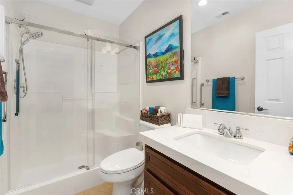 living, along with a three-quarter bathroom featuring a custom walk-in shower. Upstairs,