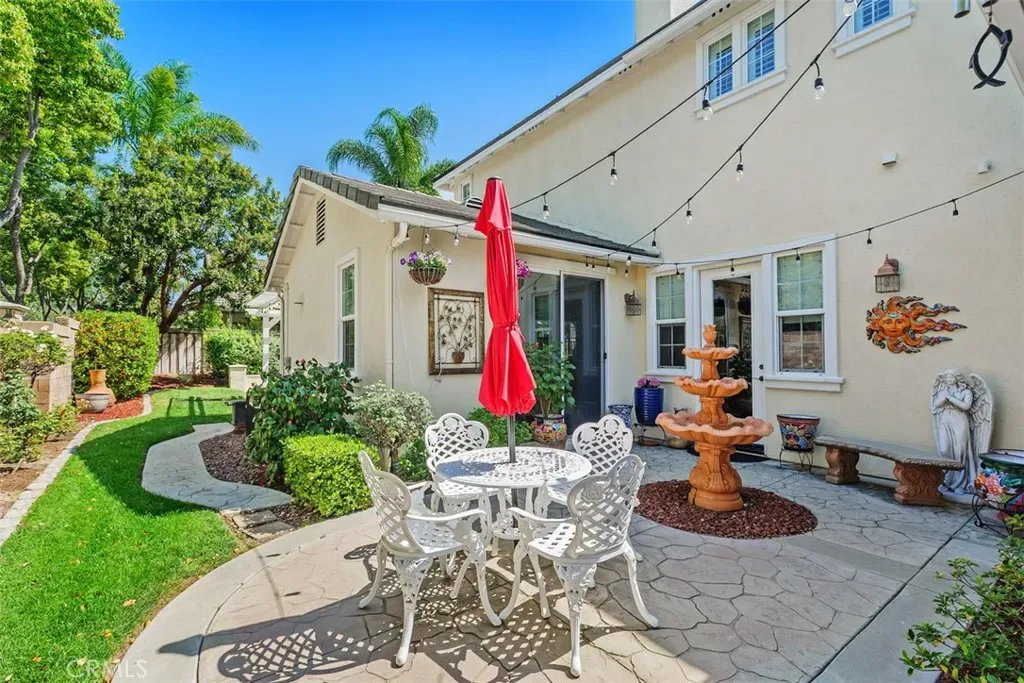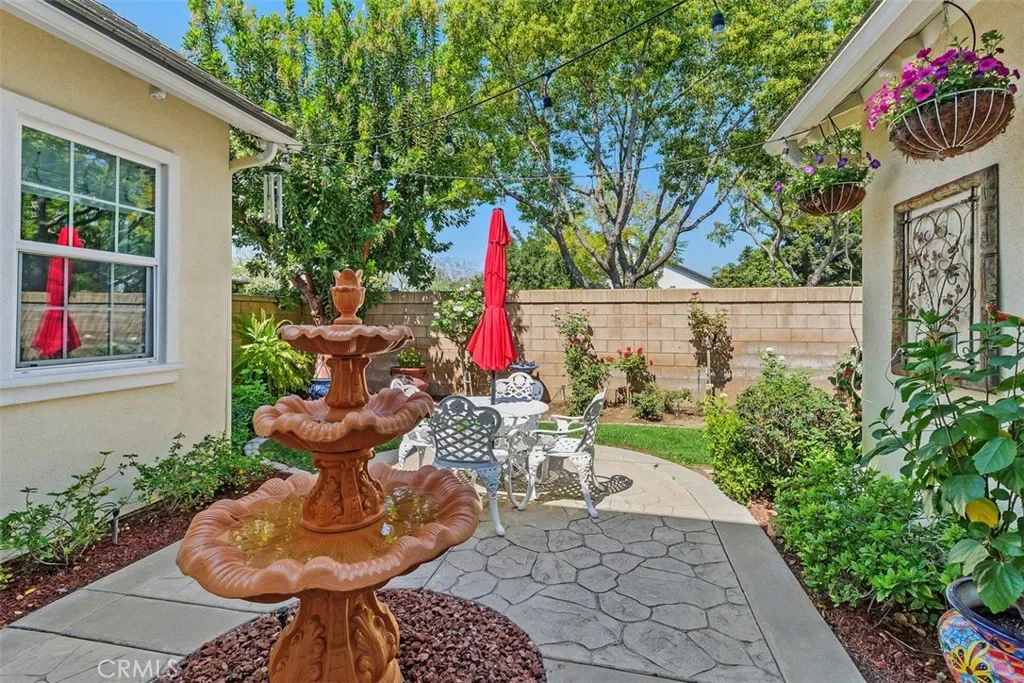 landscaped backyard and a private courtyard accented by a tranquil garden and water