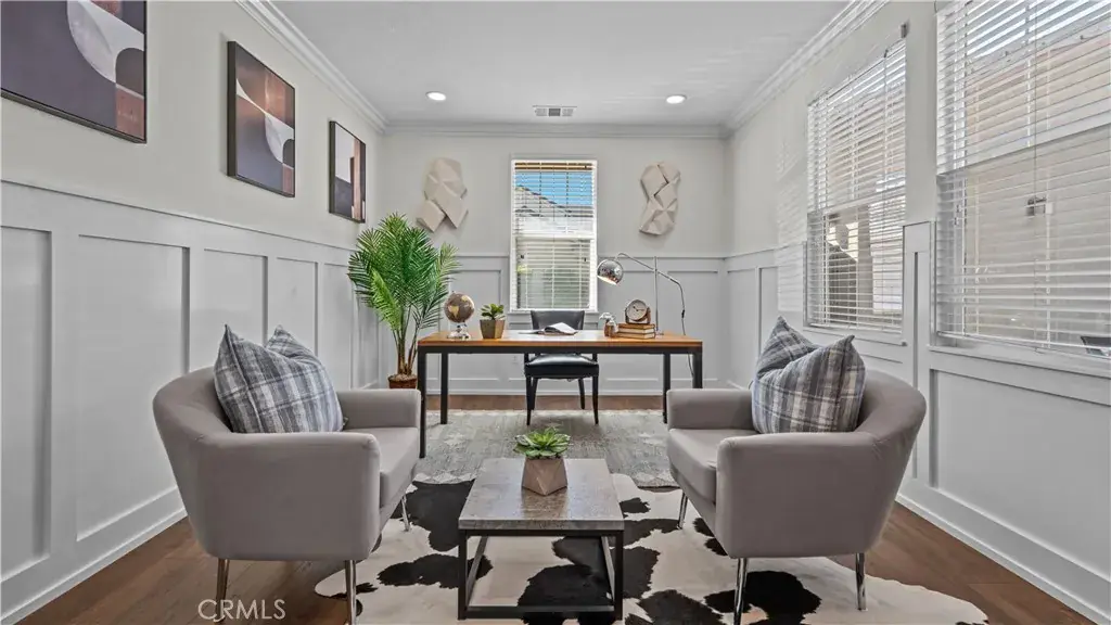Welcome to this exquisite Craftsman style estate in the well desired College park Community of Chino. Boasting over 4200 square feet of living space. This 5 bedroom, 3 full bath and 1 1/2 bath residence is a harmonious blend of classic charm and modern luxury. The living area downstairs features gorgeous coffered ceilings for an elegant finish. There is a library area downstairs making it perfect to conduct business as a home office. The large and open chefs kitchen area is another inviting feature for those who want to entertain with an oversized island and a breakfast bar that can be fit for large gatherings. The butler’s pantry is a wonderful addition! Discover timeless elegance in every detail, from the handcrafted woodwork to the gourmet kitchen. There is one bedroom downstairs with a full bathroom suite, and three upstairs with one primary bedroom suite. The primary bedroom suite has a sizable walk-in closet with a full size bath tub and shower area along with double sink counters. The loft area upstairs can be used for a home theater or a multipurpose area. Nestled on a sprawling lot exceeding 10,000 sq ft, the home features meticulous craftsmanship, spacious interiors, and a seamless fusion of indoor and outdoor living. Backyard, which is ideal for fruit trees and various plants, should you desire, is accessible with a patio door from the living room. The patio area makes it perfect as a serving point to host gatherings for family and friends with its mature trees offering privacy. Beyond its elegant confines, residents enjoy access to several community amenities that enhance the overall lifestyle.HOA amenities include a full size Club House, professionally equipped 24 hour gym, tennis courts, two swimming pools, ping pong and pool tables and walking trails. This location is prime and offers easy access to the 60 and 71 freeways and not to mention only minutes away from Chino Spectrum and the Shoppes at Chino Hills! Surrounded by several great eateries and shopping selections, Welcome to a home where exclusivity meets community, creating an unparalleled living experience the charm of a Craftsman lifestyle in this truly exceptional property.