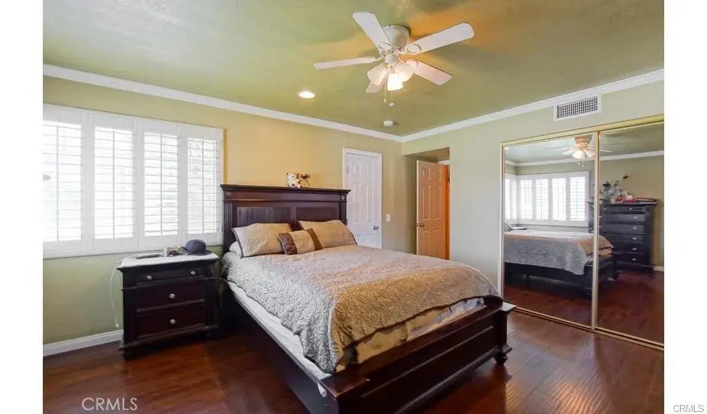 The upper level features the primary private master en-suite, characterized by its high wood ceiling. Additionally, a retreat for relaxation, a walking closet, a jetted tub, a separate shower, and a linen closet provide comfort and convenience. The low-maintenance backyard is complemented by a covered patio and ample space for entertaining with a gas hook-up BBQ. Wood laminate and tile floorings, custom paint, recessed lighting throughout, and additional features contribute to the home’s overall charm and sophistication. The home is conveniently located near freeways, schools, parks, and shopping centers, ensuring easy access to amenities and entertainment options.