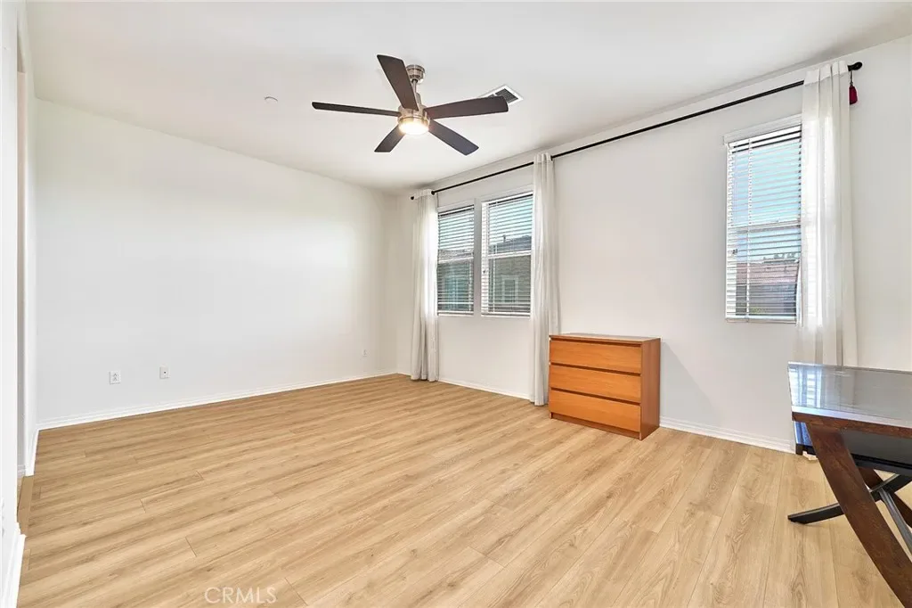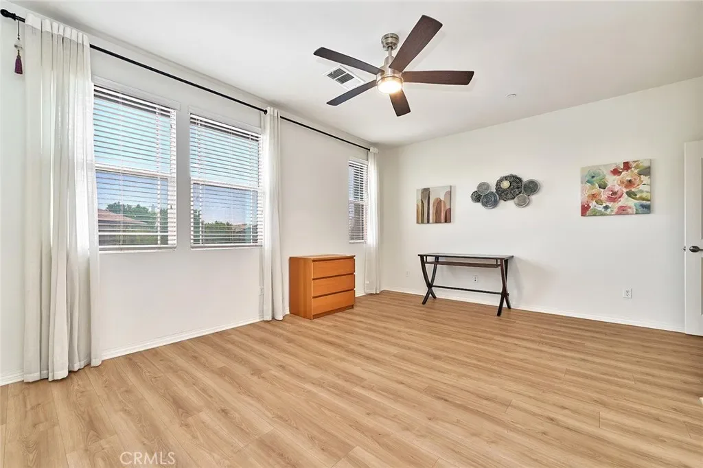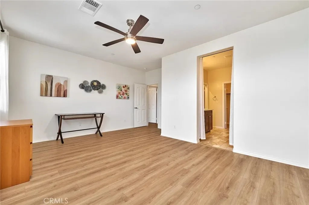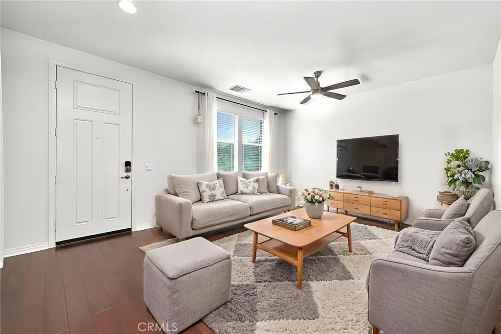 Welcome to this beautifully upgraded two story townhouse located in the highly desirable Morgan Square neighborhood within the College Park community of Chino. This well maintained home offers 2 spacious bedrooms and 2.5 bathrooms, combining modern comfort with an exceptional location. Unlike many homes in the community, this residence enjoys an open front setting with no buildings directly in front, allowing for a more open feel and pleasant views. The open concept main level features wide plank hardwood flooring throughout, a bright and inviting great room, and a dedicated dining area. The gourmet kitchen is designed for both functionality and style, showcasing granite countertops, a mosaic tile backsplash, custom cabinetry, stainless steel appliances, and a center island perfect for everyday living and entertaining. A generously sized powder room and a private covered patio provide added convenience and ideal indoor and outdoor living. Upstairs, you will find a convenient laundry room and two private en suite bedrooms. The primary suite features dual vanities, Travertine flooring, a separate soaking tub and shower, a walk in closet, and a private toilet room. The secondary suite also includes its own full bathroom, offering flexibility for guests or multi generational living. Additional highlights include a 2 car attached garage, tankless water heater, and designer interior paint. The home is also energy efficient with well maintained heating and cooling systems that help keep utility costs low throughout the year. Ideally situated facing the community picnic area with a playground just steps away. Residents of College Park enjoy resort style amenities, including two swimming pools, a spa, kids splash zone, fitness center, clubhouse, BBQ areas, multiple parks, basketball and tennis courts, and more. Located within the award winning Chino Valley Unified School District and close to shopping, dining, and major freeways, this home offers an outstanding opportunity for comfortable living in a vibrant community.