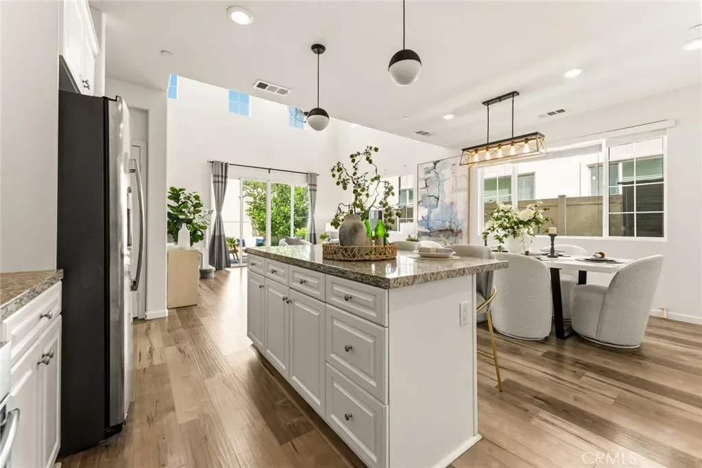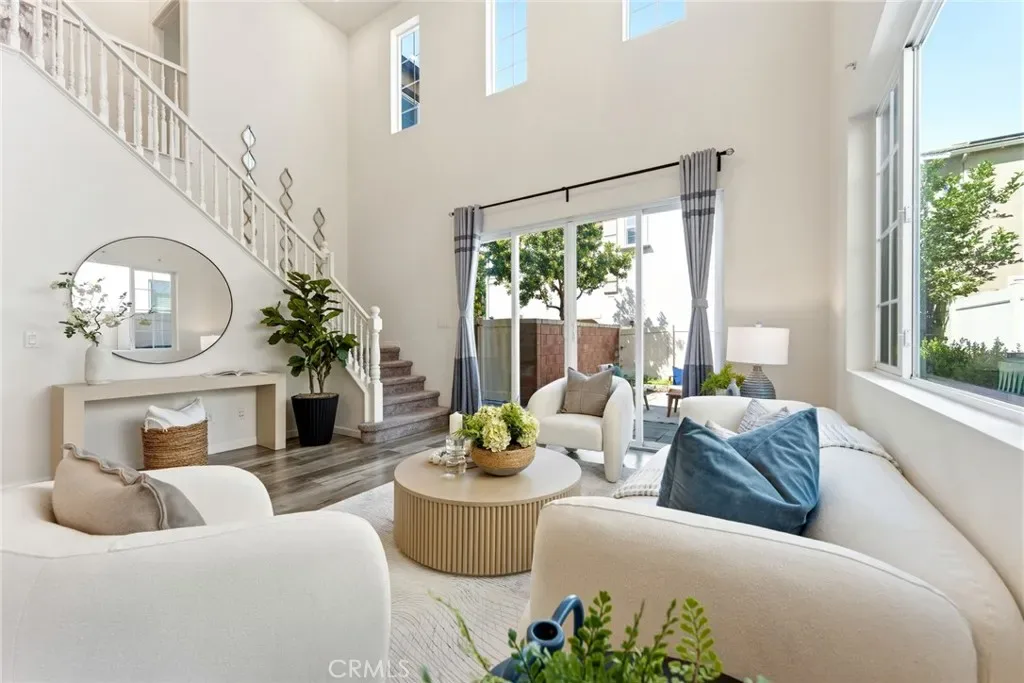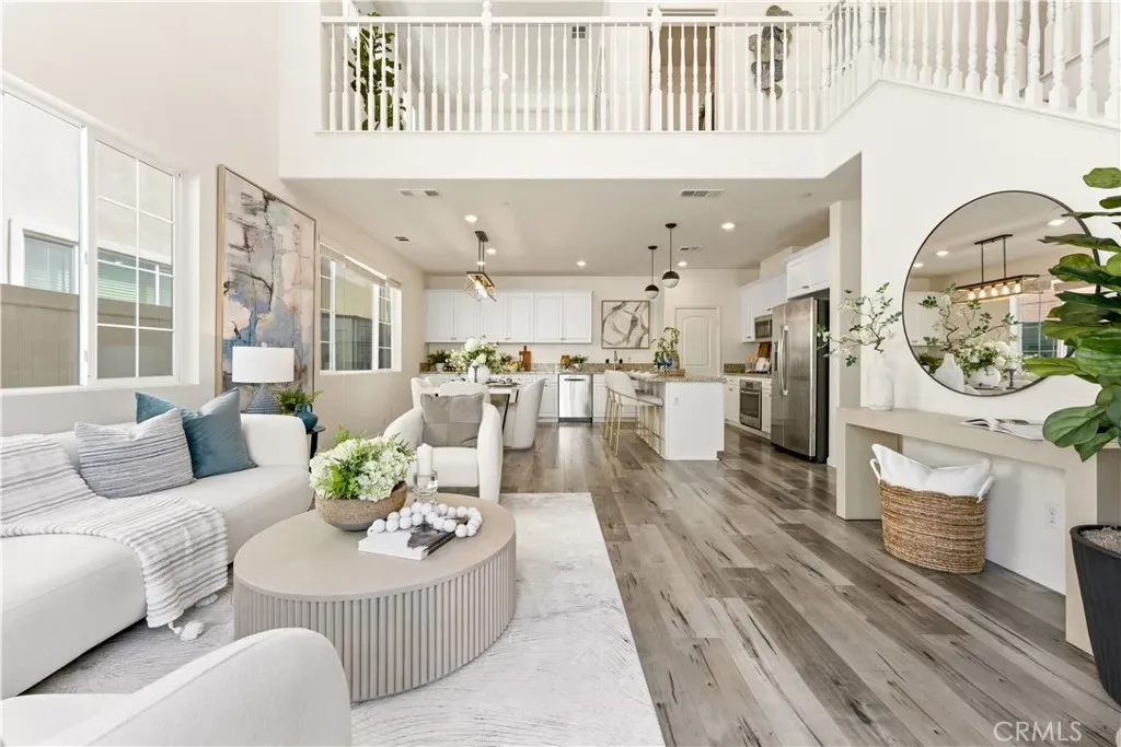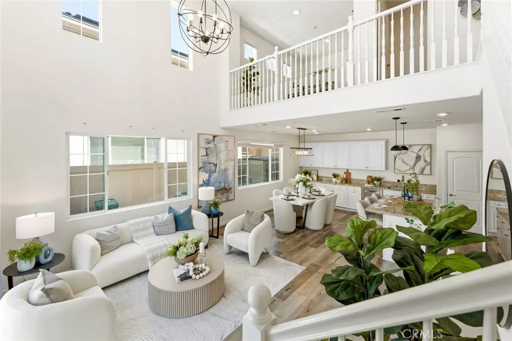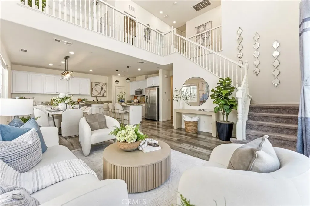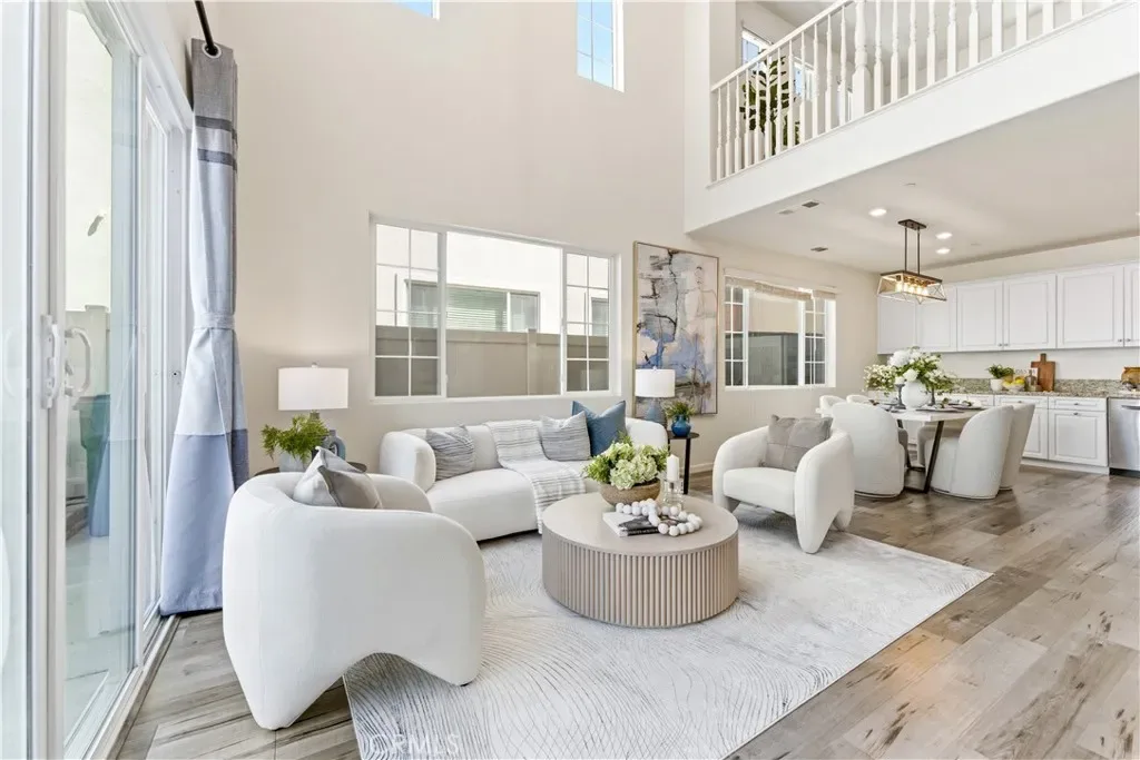 Step inside to a stunning high-ceiling living room with abundant natural light, seamlessly connecting to the open-concept kitchen and dining areas. The kitchen features stainless steel appliances, a large center island, and a walk-in pantry.