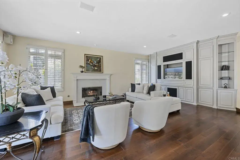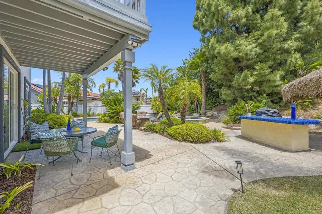 Welcome to a sanctuary of luxury in the heart of Rancho Del Rey, where every detail of this exquisite residence invites you to experience timeless elegance, serenity, and comfort. Spanning nearly 4,300 square feet, this stunning home features 5 spacious bedrooms and 4.5 beautifully appointed bathrooms, each fireplace crafted to blend refined style with everyday ease. Soaring ceilings, handcrafted fireplaces, and rich hardwood floors set a tone of quiet sophistication throughout the main living areas. At the center of the home, a gourmet kitchen awaits—wrapped in quartz countertops and equipped with premium appliances—perfectly designed for everything from Sunday brunch to intimate celebrations. The open layout flows naturally into a sunlit breakfast area and inviting family room, where memories are meant to be made. The primary suite is a private retreat, offering a fireplace, spa-like bathroom with jacuzzi tub, and his-and-hers walk-in closets. A wrap-around balcony overlooks the tranquil garden—ideal for morning coffee, golden sunsets, or watching full moons rise over the trees. A distinguished executive office, lined with custom wood paneling from floor to ceiling, offers a refined space for deep focus or creative flow. Outside, your own personal oasis unfolds: a refined and serene landscaped yard, built-in grill, and charming palapa set the stage for unforgettable outdoor entertaining or peaceful evenings under the stars. Solar panels, a whole-home water softener. NO HOA or Mello-Roos, this home offers not just beauty, but peace of mind. Just 20 minutes from downtown San Diego and the Mexican border