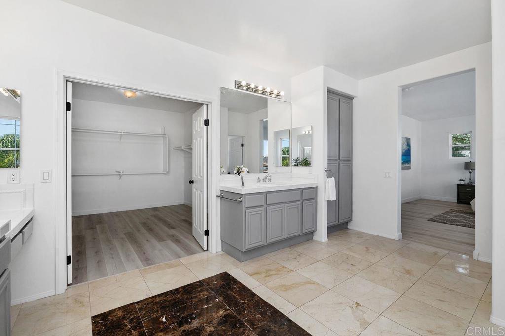 Nestled within the prestigious, tree-lined, gated community of Augusta Place—one of Eastlake’s most sought-after streets with No Mello Roos—this exceptional residence offers luxurious golf-course living on a private cul-de-sac with over 3,100 sq ft of beautifully designed living space. The remodeled chef’s kitchen is the heart of the home, showcasing quartz countertops, high-end appliances, dual ovens, a drawer microwave, pot filler, water filtration system, and abundant counter space ideal for entertaining and everyday living. Additional premium upgrades include owned solar and a new HVAC system for enhanced comfort and energy efficiency, along with dual-pane windows, a water softener, a finished three-car garage, and generous storage throughout. The well-appointed floor plan features five spacious bedrooms and three full bathrooms, formal dining, a breakfast nook, and both living and family rooms complemented by a charming fireplace that creates a warm and welcoming ambiance. The expansive primary suite offers a true retreat with a large walk-in closet, dual vanities, and a separate soaking tub and shower. Outdoors, the private backyard provides a peaceful setting with space to create your dream oasis, including pool potential, while a long and wide driveway offers room for large toys or additional vehicles, plus a dedicated dog run enclosure. Recent improvements include fresh interior paint, cleaned solar panels, treated and power-washed roof tiles, and a power-washed exterior—creating a truly move-in-ready presentation. Ideally located near the golf course and just steps from one of three community pools, residents also enjoy access to Eastlake Greens’ resort-style amenities including pools, tennis courts, clubhouse, parks, and more—an outstanding opportunity to experience elevated Eastlake living with no Mello Roos at its finest. VA assumable interest rate of 3.1%.