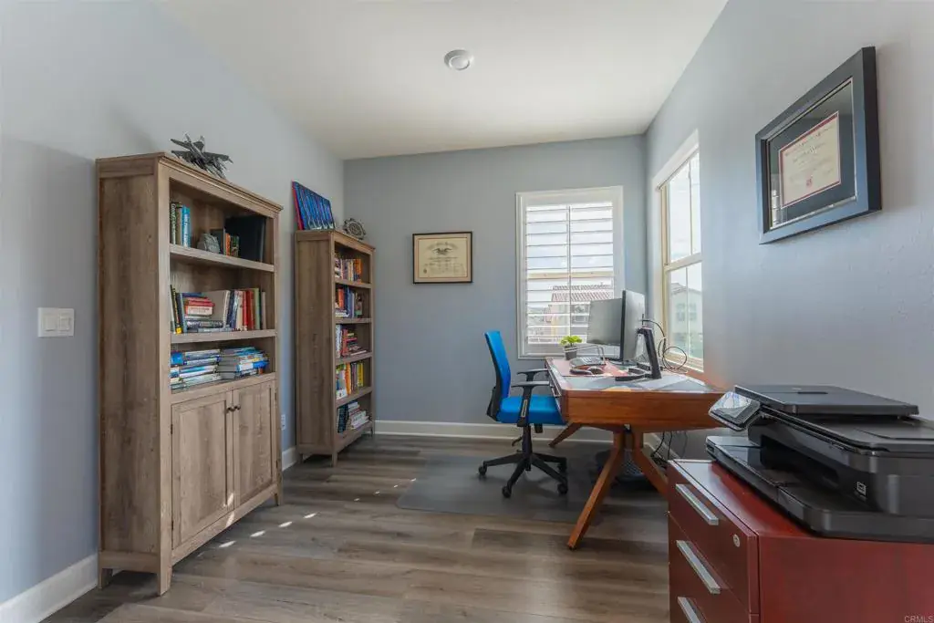 Located in the highly sought-after Escaya community of Otay Ranch, this beautifully upgraded 4-bedroom, 3.5-bath home offers modern living, energy efficiency, and exceptional community amenities. Featuring fully paid solar, smart home technology, and a flexible floor plan, this home is truly move-in ready and designed for today’s lifestyle. Inside, you’ll find an open-concept layout with luxury vinyl plank flooring, plantation shutters, and abundant natural light throughout. The spacious kitchen anchors the home with a large island, extended granite countertops, stainless steel appliances, and a walk-in pantry, making it perfect for everyday living and entertaining. A main-level bedroom and full bath provide ideal space for guests, multigenerational living, or a private home office. Upstairs, a generous loft offers endless flexibility for a gym, media room, or play space. Step outside to the California Room patio with a built-in fireplace, creating a seamless indoor-outdoor living experience. Enjoy being just steps from parks, trails, dog park, resort-style pool, clubhouse, and fitness center. With an EV charger, tankless water heater, and smart lighting and entry systems, this Escaya home blends comfort, convenience, and long-term value in one of Chula Vista’s premier master-planned communities.
