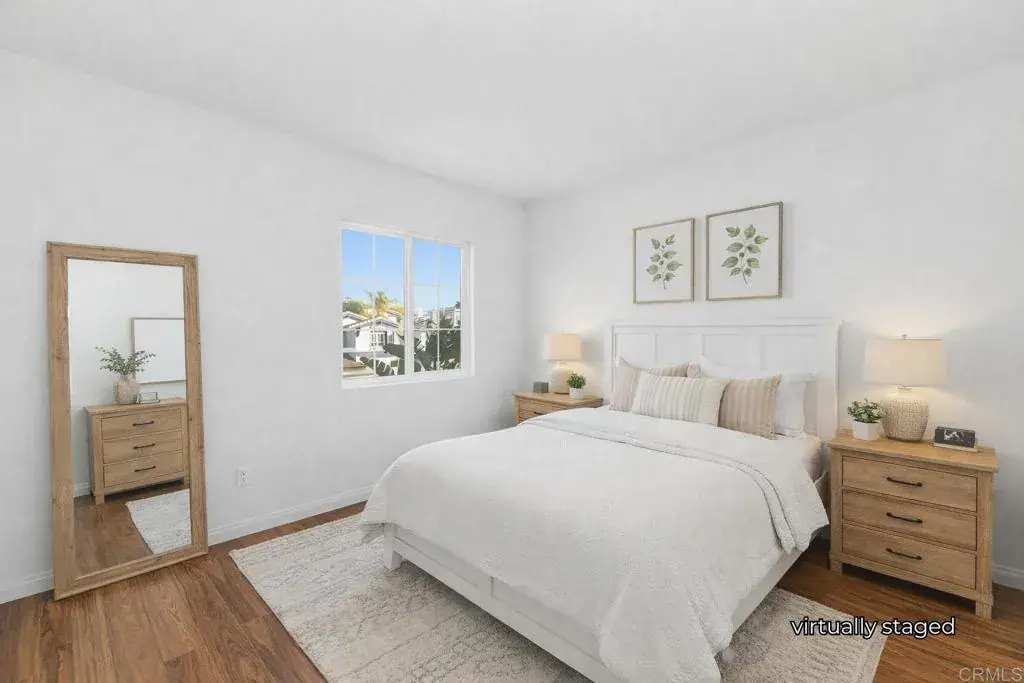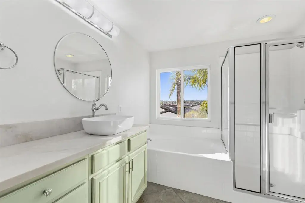 Welcome to this beautifully 4 bed, 3 bath home located in the highly desirable Eastlake Vistas community of San Diego. Thoughtfully refreshed throughout, this residence features fresh new paint, brand new kitchen appliances, new bathroom finishes, and new flooring across the entire second level creating a modern, move-in-ready feel. The inviting floor plan offers a convenient downstairs bedroom with its own full bathroom, perfect for guests or multi-generational living. The open concept kitchen is spacious and bright, with glass doors that open to a charming courtyard ideal for morning coffee or casual gatherings. A separate dining area flows seamlessly into the living room, where a cozy fireplace sets the tone for relaxing evenings at home. Upstairs, the private primary suite is tucked away from the other two bedrooms, offering a peaceful retreat complete with a large walk-in closet and a spa-like bath with both tub and shower. The upstairs laundry room adds everyday convenience with a sink and window for natural light. Step outside to the backyard and discover multiple beautifully staged areas designed for entertaining or quiet enjoyment. Mature landscaping and tranquil surroundings create a serene outdoor oasis where you can savor every corner of this special home. With its fresh updates, functional layout, and inviting indoor-outdoor living spaces, this Eastlake Vistas gem is ready to welcome you home. *some images staged using AI