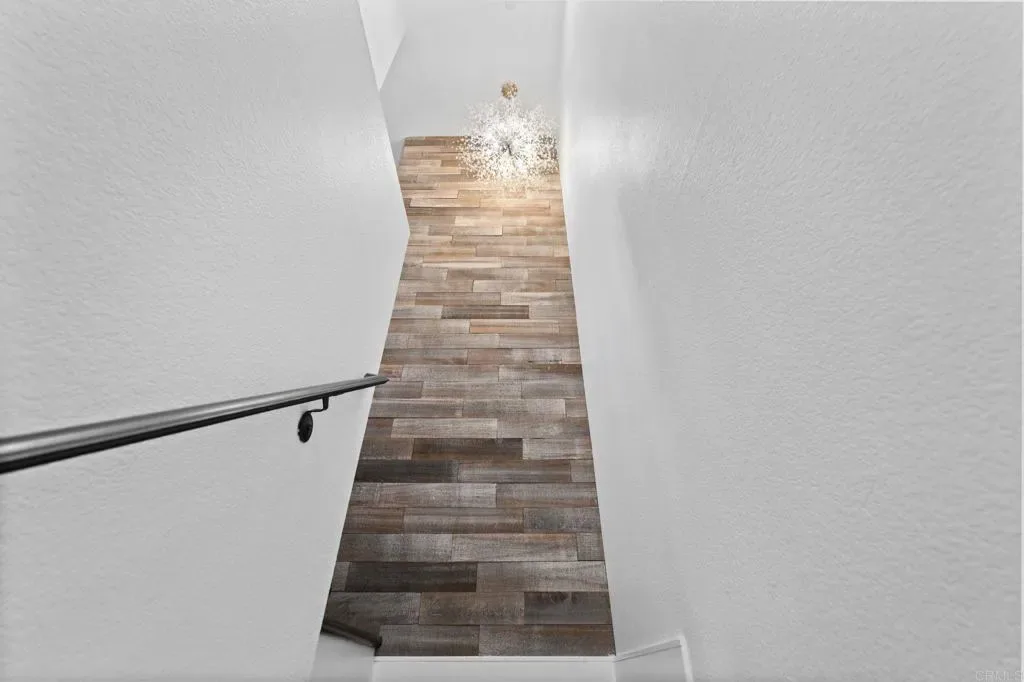 Beautifully upgraded 2-bedroom residence located in the desirable Avalon community of Otay Ranch. This thoughtfully updated home features quartz countertops, stainless steel appliances, luxury vinyl plank flooring throughout, elegant wrought iron stair railings, and a convenient stackable washer and dryer. Recent improvements include a newer tankless water heater, newer AC system, newer water softener, newer dishwasher, and newer refrigerator. The home is also equipped with a MyQ smart garage door opener for added convenience and security. The spacious primary bedroom showcases an open-concept bathroom suite with dual vanities and a walk-in closet complete with custom built-in shelving. Additional highlights include a private one-car garage, an extra assigned parking space, and a secluded balcony with unobstructed north-facing views. Avalon is FHA and VA approved and offers an array of resort-style amenities, including tennis and basketball courts, a fitness center, swimming pool, playground, and clubhouse.