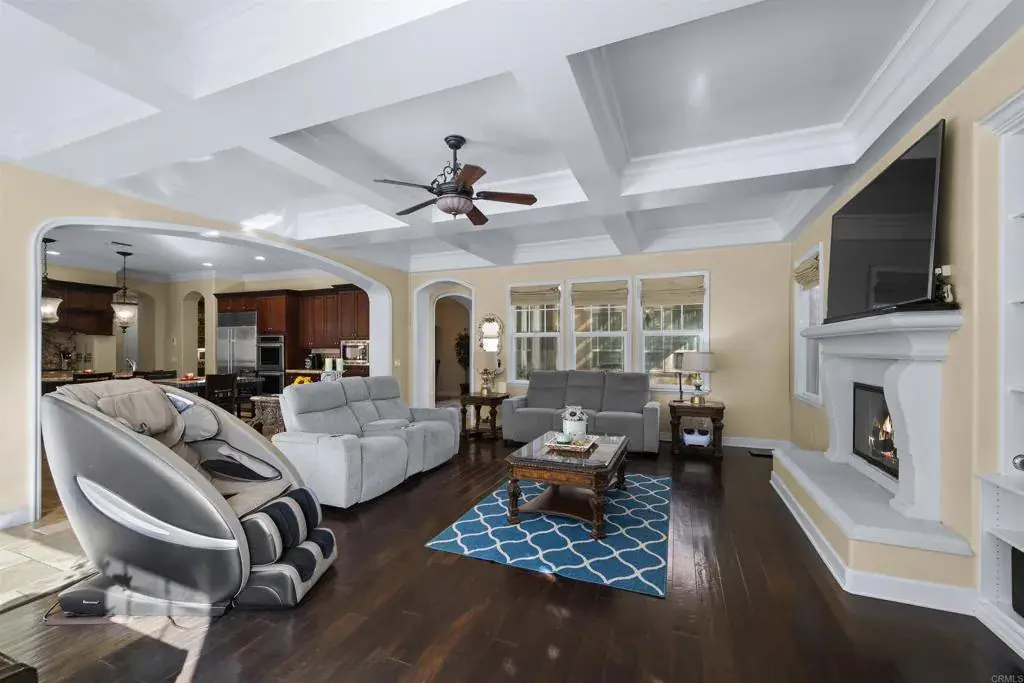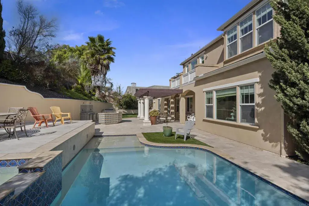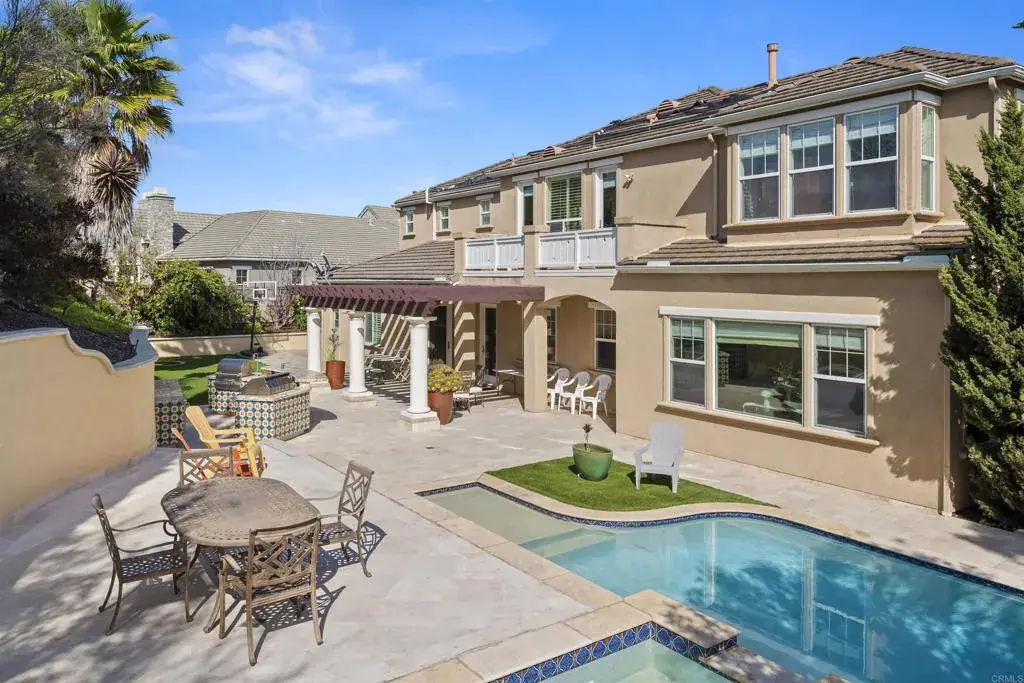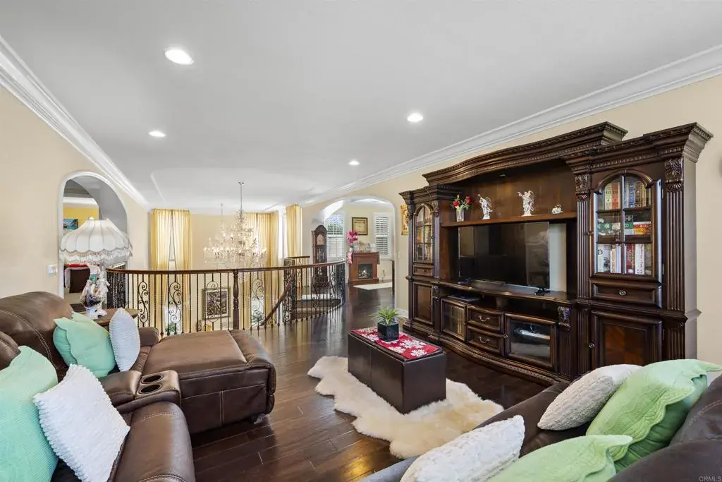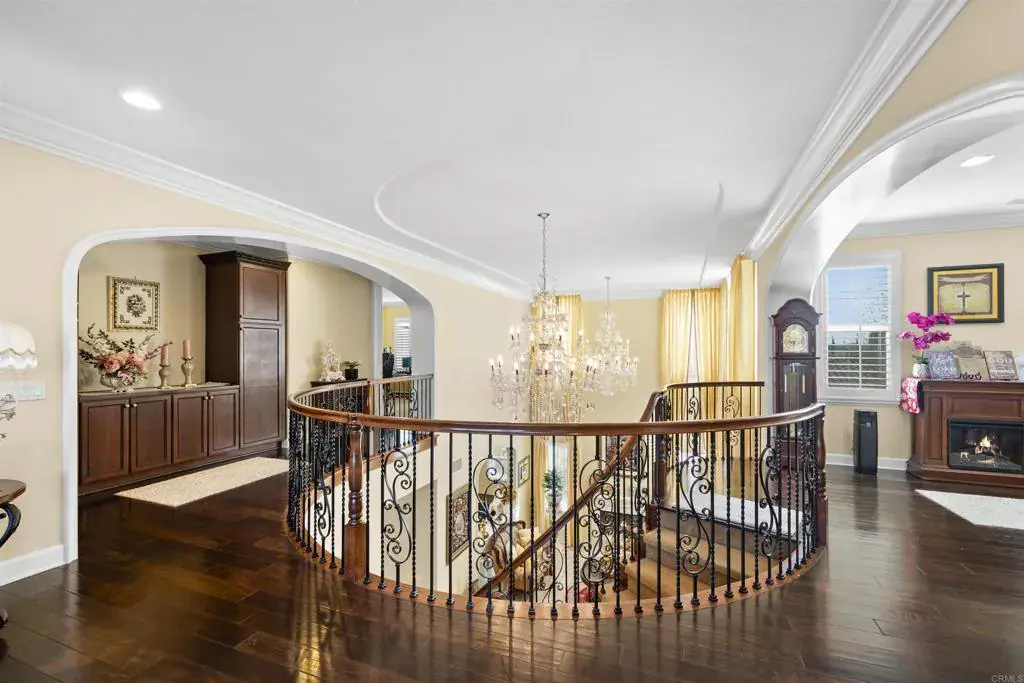 Prestigious estate living in The Woods in Eastlake. This stunning 6,200+ sq ft residence offers 6 bedrooms and 6.5 bathrooms, highlighted by soaring coffered ceilings, a dramatic circular staircase, and a gourmet kitchen. The expansive floor plan flows seamlessly into a spacious family room featuring one of four fireplaces. The backyard is ideal for entertaining, complete with a pool, spa, built in BBQ, and multiple patio areas. Two bedrooms and two full bathrooms are conveniently located downstairs, including one bedroom with a private entrance. Additional expansive Bonus room Approx. 1,000 sq. ft., perfect for in-laws or an oversized family retreat. Features include paid off solar panels, dual AC units, a four-car garage, and access to The Woods Clubhouse, all within a low HOA and one of Eastlake’s most desirable communities.