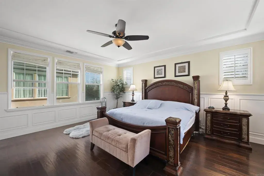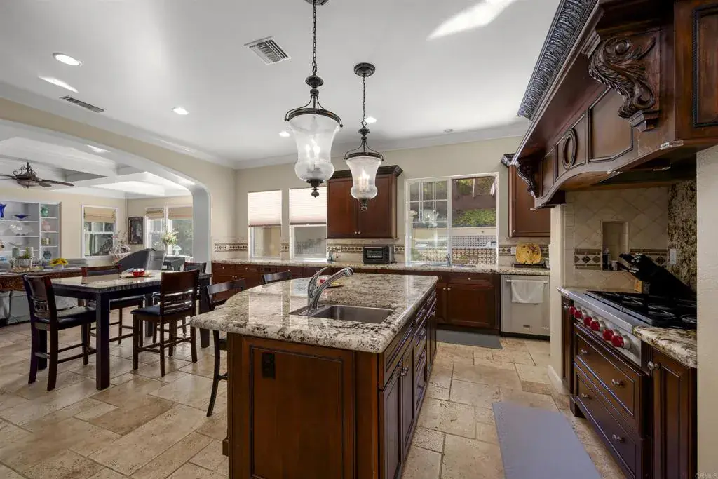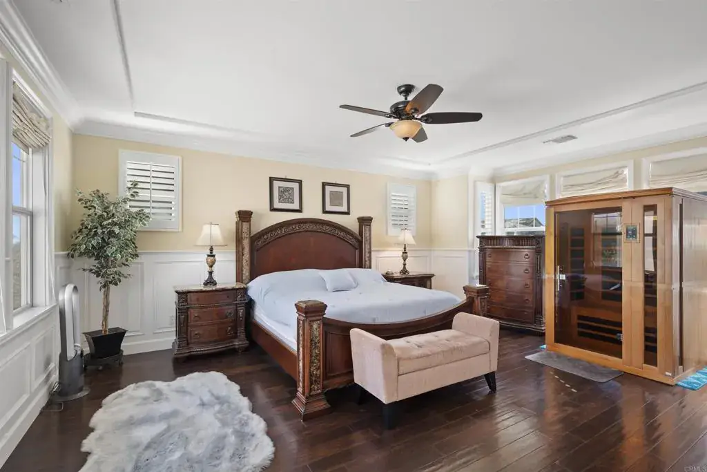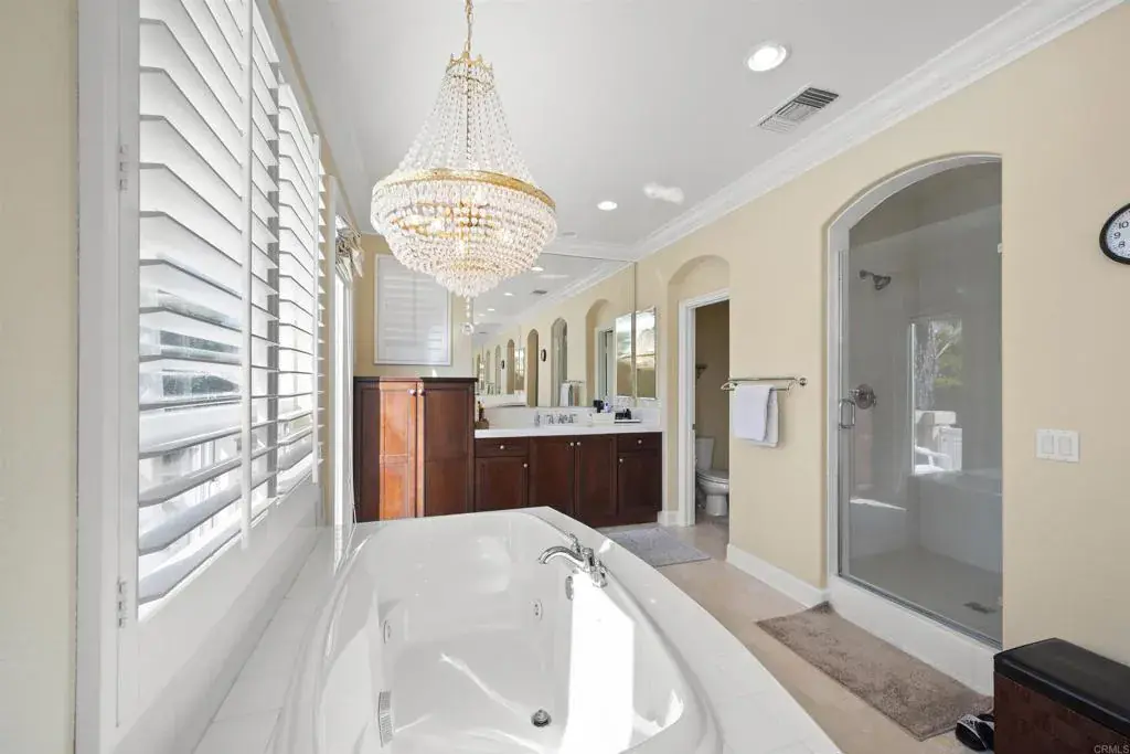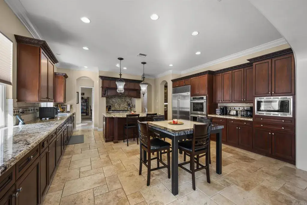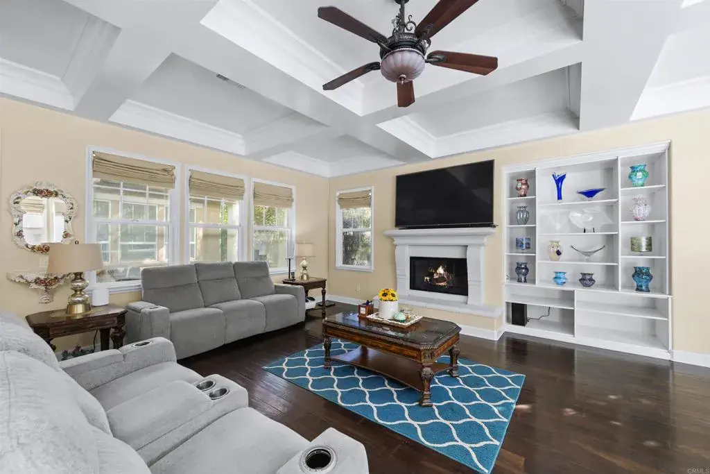 Prestigious estate living in The Woods in Eastlake. This stunning 6,200+ sq ft residence offers 6 bedrooms and 6.5 bathrooms, highlighted by soaring coffered ceilings, a dramatic circular staircase, and a gourmet kitchen. The expansive floor plan flows seamlessly into a spacious family room featuring one of four fireplaces. The backyard is ideal for entertaining, complete with a pool, spa, built in BBQ, and multiple patio areas. Two bedrooms and two full bathrooms are conveniently located downstairs, including one bedroom with a private entrance. Additional expansive Bonus room Approx. 1,000 sq. ft., perfect for in-laws or an oversized family retreat. Features include paid off solar panels, dual AC units, a four-car garage, and access to The Woods Clubhouse, all within a low HOA and one of Eastlake’s most desirable communities.