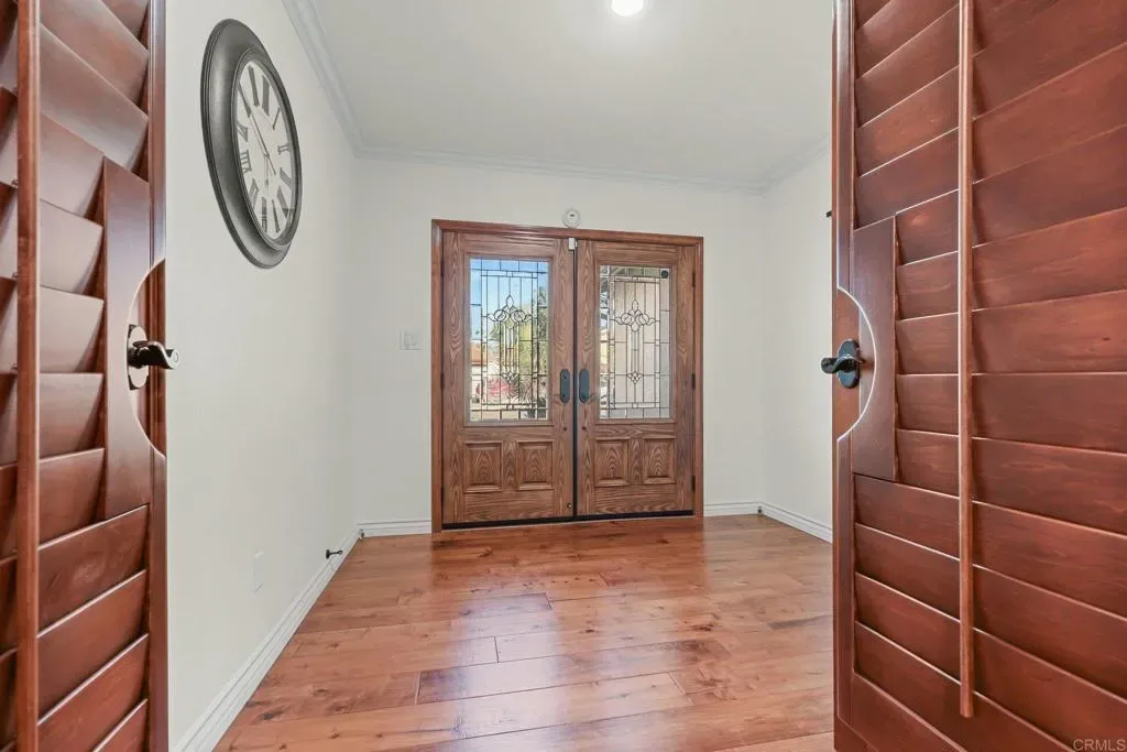 Ideally located in Chula Vista on a peaceful cul-de-sac, this beautifully upgraded single-story home showcases partial ocean views. An open floor plan welcomes you with rich cherry wood flooring, crown molding, plantation shutters throughout, and large windows that fill the home with natural light. The inviting living room features a cozy fireplace. The upgraded kitchen offers custom cherry cabinetry, granite countertops, and abundant storage, newer appliances making it both stylish and functional. The spacious primary suite provides a private retreat with an updated ensuite bath featuring dual quartz vanities. The backyard has a generous Trex composite deck ideal for dining and entertaining. Meticulously maintained and move-in ready with new HVAC system & Solar owned.
