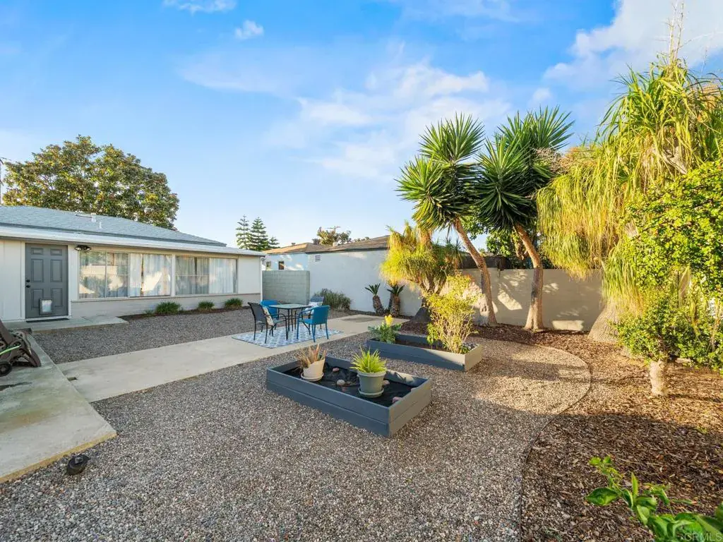Welcome to this inviting single-story home tucked away on a quiet cul-de-sac in North Chula Vista, just minutes from the energy of Downtown and Memorial Park. This residence offers 2 bedrooms and 1 bathroom, providing flexible living options ideal for remote work, a home business, or multi-generational living. The interior features hardwood floors, a functional open layout, and custom cabinetry throughout. The updated kitchen includes white shaker cabinets and stainless steel appliances, while the renovated bathroom features a tiled shower. Additional upgrades include newer plumbing, modern lighting, ceiling fans, and heating and air conditioning for year-round comfort. Outside, the spacious, usable lot is perfect for relaxing or entertaining, complete with mature citrus trees and raised garden beds. A detached garage with washer and dryer hookups is ready for you to use. The extended driveway provides parking for up to three vehicles, plus ample street parking. With easy access to both I-5 and I-805, commuting to Coronado, the 32nd Street Naval Base, Downtown San Diego, and nearby beaches is effortless.