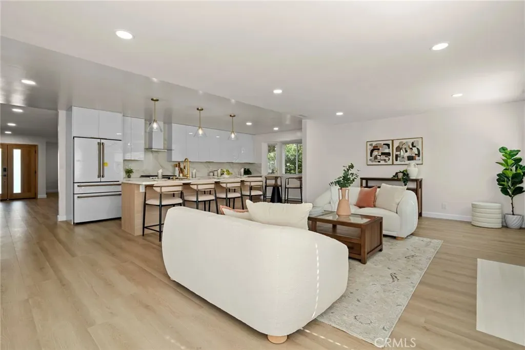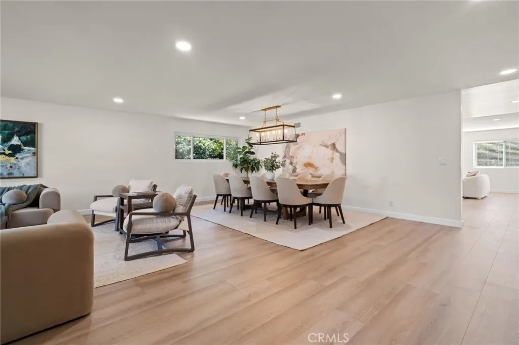 The floor plan flows effortlessly from the inviting and open living room to a formal dining area ideal for hosting family and friends. The new kitchen, adorned with luxe accents, a hidden pantry with hutch bookcase door, and equipped with brand new appliances, seamlessly blends elegance and functionality, creating a perfect space for both everyday living and effortless entertaining. A spacious family room anchors the home with its cozy fireplace and seamless access to the beautifully landscaped backyard, complete with fruit trees and plenty of room for a swimming pool.