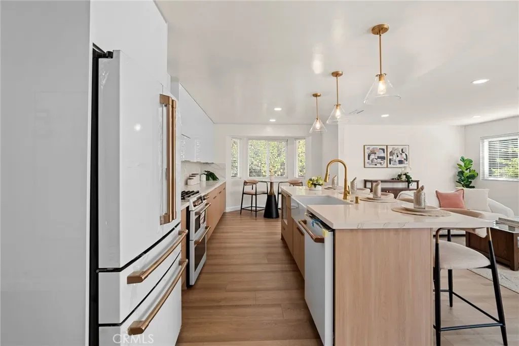 Step inside to a bright, open-concept layout where new luxury flooring and a custom-built kitchen set the tone for modern living. The kitchen showcases sleek quartz countertops, designer cabinetry, and premium finishes – creating the perfect space for cooking, entertaining, and everyday gatherings.