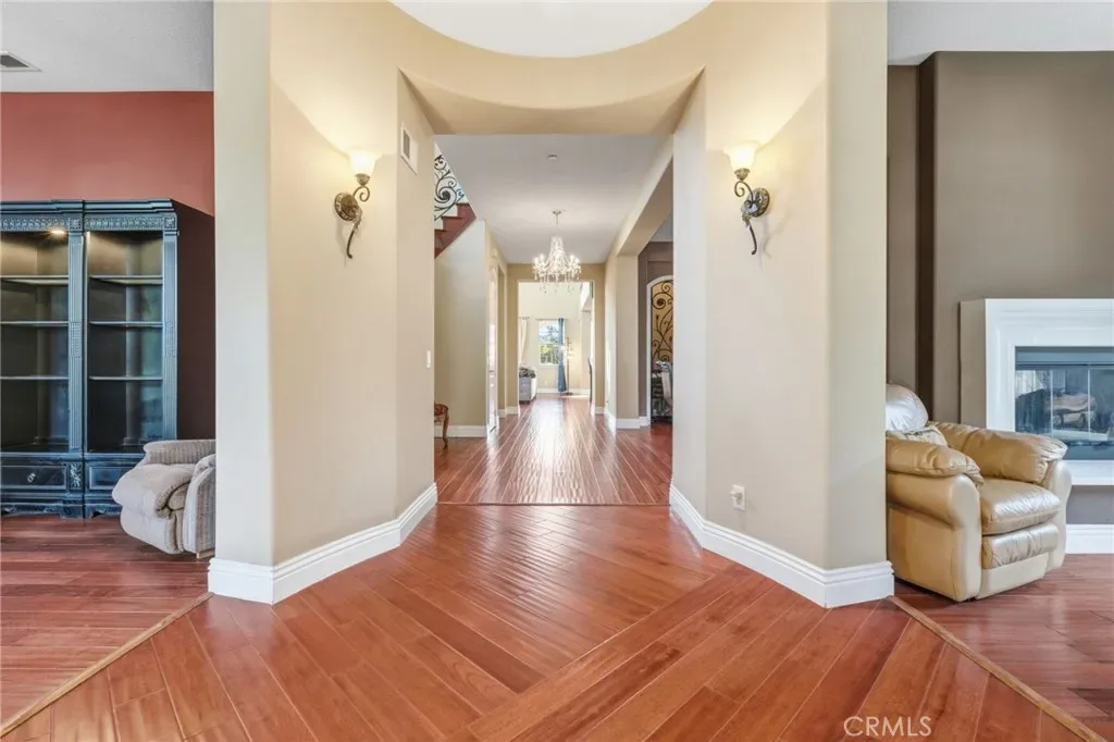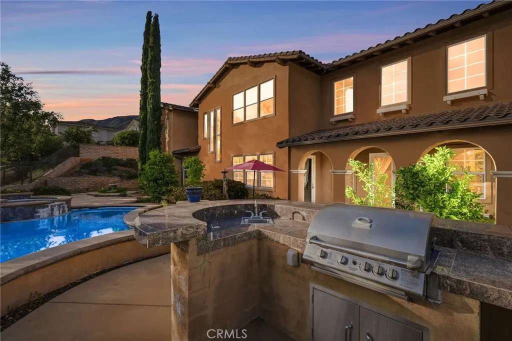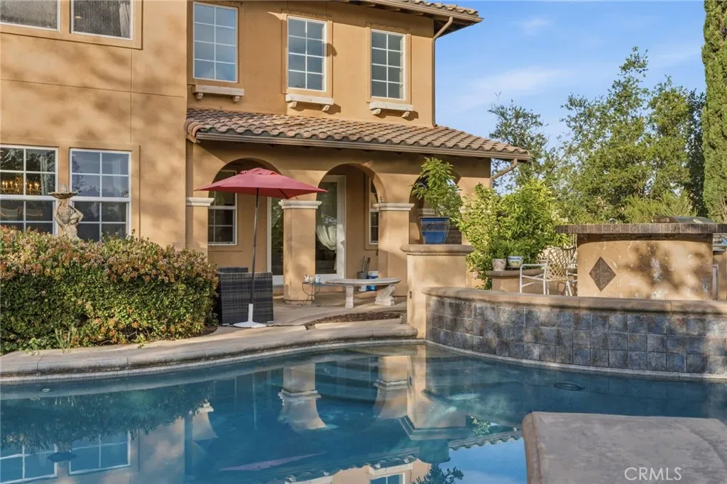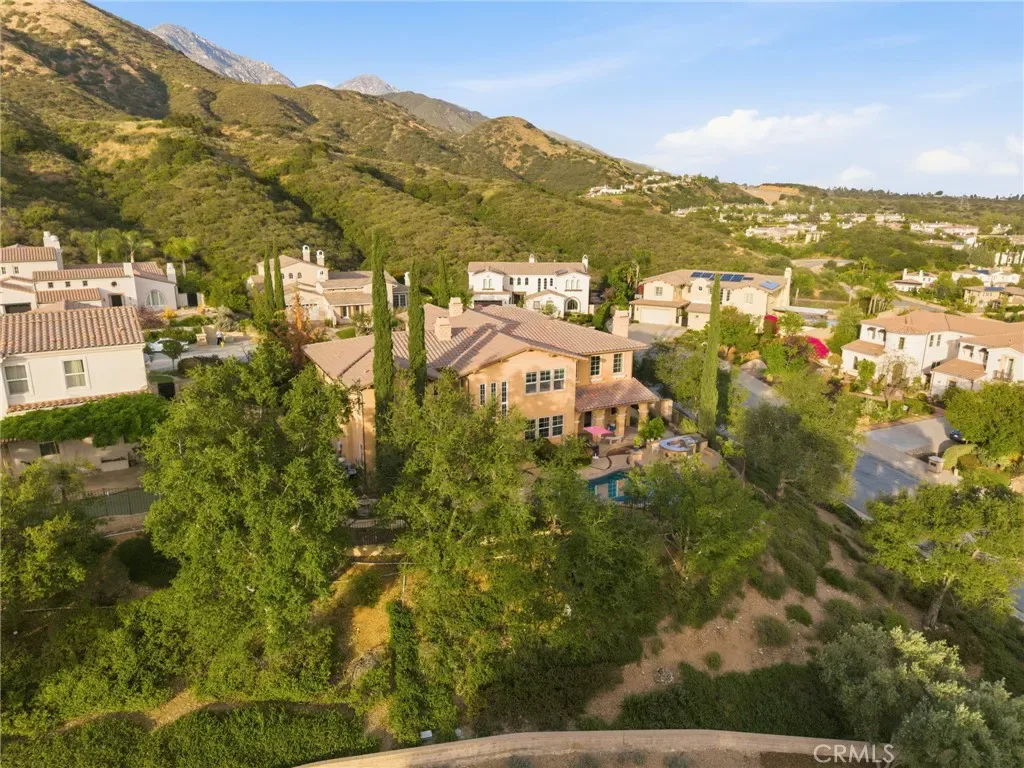 Perched above the city in the prestigious Stone Canyon Preserve of Padua Hills sits this Spanish Colonial Mediterranean inspired oasis. 4463 Cardinal Cushing offers an unparalleled blend of architectural grace and attention to detail. Nestled near the San Gabriel mountains with views that seem to stretch from now to forever Cardinal Cushing is an impressive 5,629 square feet living space on over a half acre lot. This residence commands attention with its striking hand forged iron work along the spiral staircase, hand distressed cherrywood floors and manicured grounds. Its perimeter is surrounded by cypress trees and unique fountains giving the feel of Provence in California. Upon entry, the home reveals an expansive, natural light-filled floor plan, designed for both grand-scale entertaining and intimate daily living. The professional kitchen serves as the heart of the home, boasting two grand granite kitchen islands, three Wolf ovens, a Sub-Zero refrigerator, butler’s pantry, essential vegetable sink and walk in pantry. Many Michelin style dinners can be created here. The kitchen flows seamlessly into elegant living spaces characterized by high ceilings, French doors and refined finishes. The family room lends itself to both movie time with popcorn by the fire and entertaining guests. The five spacious en-suite bedrooms all offer breathtaking views. The luxurious primary suite acts as a private sanctuary, complete with a grand two-sided fireplace. Its bathroom offers a large soaking tub, large walk-in closet and vanity. The French doors from the primary open to a light filled balcony with views of the mountains. This is the perfect place to enjoy a quiet morning cup of coffee. Downstairs, tall French doors lead to the backyard that feels like a resort atmosphere, pool, spa, and a built-in BBQ are perfect for enjoying the temperate Southern California climate. A four-car garage space provides substantial storage and convenience, while the exclusive community setting ensures privacy and peace of mind. This prime cul-de-sac lot is located just a short walk or bike ride to the Claremont Hills Wilderness Park, Thompson Creek Trail, Blaisdell Ranch Preserve and the historic Padua Theatre. Also located near the Claremont Colleges, Western Christian School, Higginbotham Park, La Puerta Sports Park and convenient freeway access. Experience the pinnacle of Claremont living in a home that perfectly balances timeless European influence with contemporary comfort.