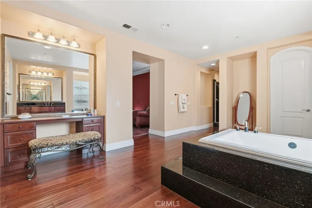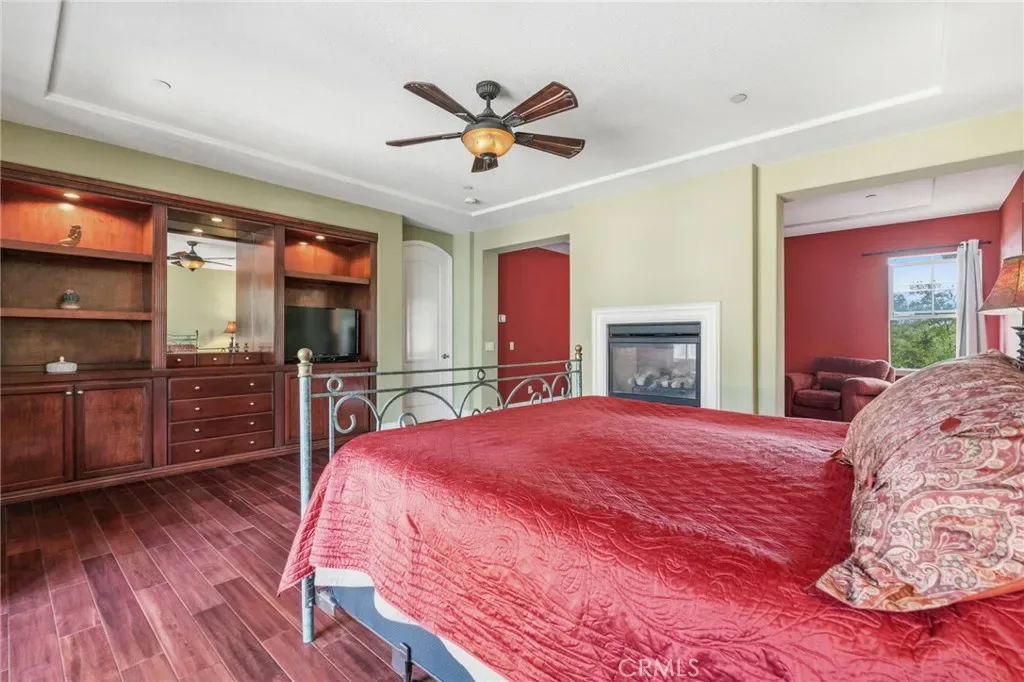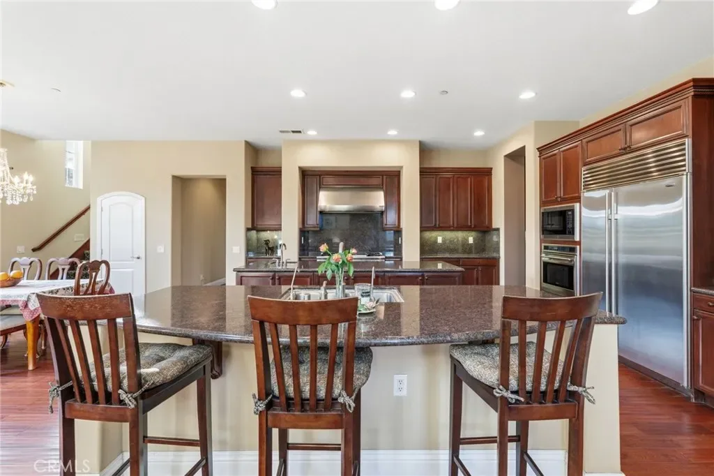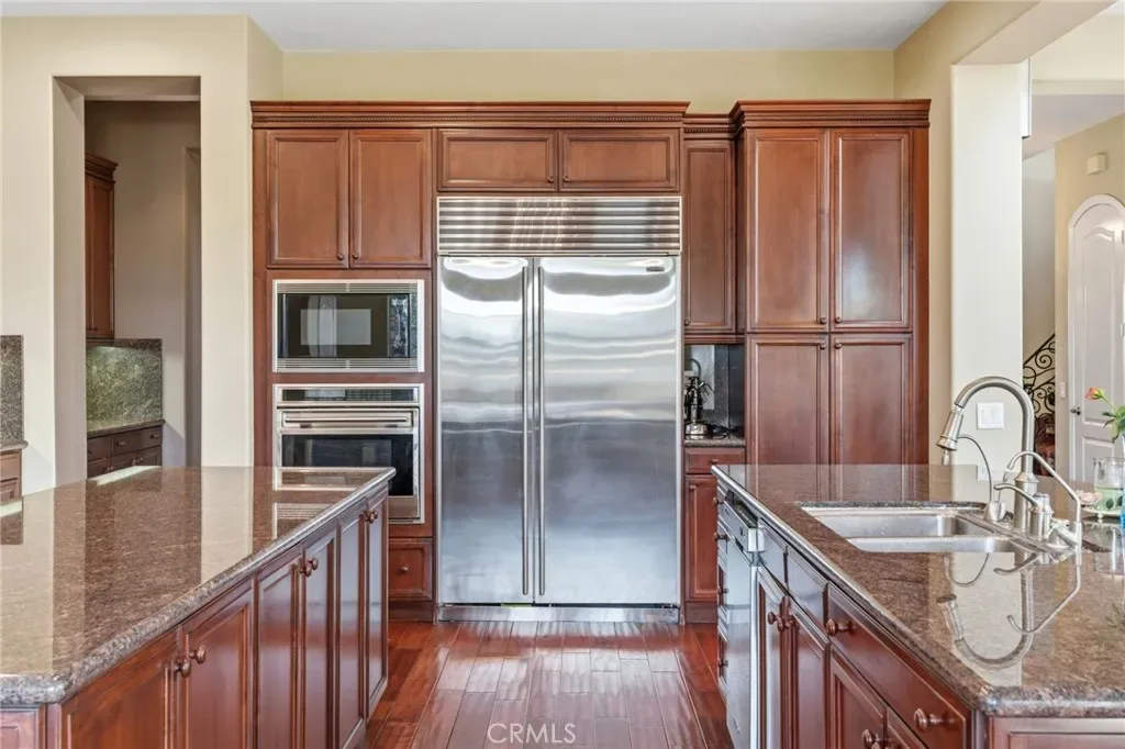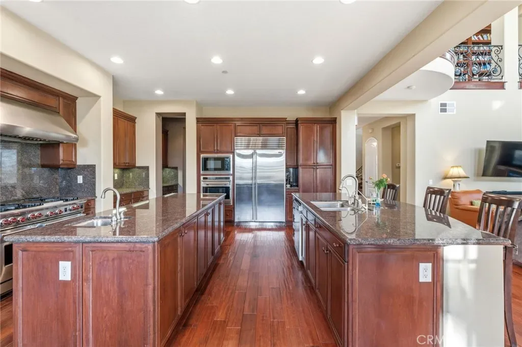 Perched above the city in the prestigious Stone Canyon Preserve of Padua Hills sits this Spanish Colonial Mediterranean inspired oasis. 4463 Cardinal Cushing offers an unparalleled blend of architectural grace and attention to detail. Nestled near the San Gabriel mountains with views that seem to stretch from now to forever Cardinal Cushing is an impressive 5,629 square feet living space on over a half acre lot. This residence commands attention with its striking hand forged iron work along the spiral staircase, hand distressed cherrywood floors and manicured grounds. Its perimeter is surrounded by cypress trees and unique fountains giving the feel of Provence in California. Upon entry, the home reveals an expansive, natural light-filled floor plan, designed for both grand-scale entertaining and intimate daily living. The professional kitchen serves as the heart of the home, boasting two grand granite kitchen islands, three Wolf ovens, a Sub-Zero refrigerator, butler’s pantry, essential vegetable sink and walk in pantry. Many Michelin style dinners can be created here. The kitchen flows seamlessly into elegant living spaces characterized by high ceilings, French doors and refined finishes. The family room lends itself to both movie time with popcorn by the fire and entertaining guests. The five spacious en-suite bedrooms all offer breathtaking views. The luxurious primary suite acts as a private sanctuary, complete with a grand two-sided fireplace. Its bathroom offers a large soaking tub, large walk-in closet and vanity. The French doors from the primary open to a light filled balcony with views of the mountains. This is the perfect place to enjoy a quiet morning cup of coffee. Downstairs, tall French doors lead to the backyard that feels like a resort atmosphere, pool, spa, and a built-in BBQ are perfect for enjoying the temperate Southern California climate. A four-car garage space provides substantial storage and convenience, while the exclusive community setting ensures privacy and peace of mind. This prime cul-de-sac lot is located just a short walk or bike ride to the Claremont Hills Wilderness Park, Thompson Creek Trail, Blaisdell Ranch Preserve and the historic Padua Theatre. Also located near the Claremont Colleges, Western Christian School, Higginbotham Park, La Puerta Sports Park and convenient freeway access. Experience the pinnacle of Claremont living in a home that perfectly balances timeless European influence with contemporary comfort.