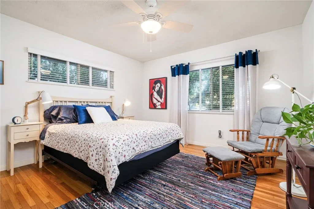 Beautifully Updated Single Story In The Heart Of Claremont. Located on a large corner lot in a tranquil, well-established neighborhood in central Claremont, this single-story home is set behind vibrant drought-tolerant landscaping, keeping water costs low and enhancing curb appeal. The custom leaded glass front door creates an impressive entry and brings natural light into the foyer. The layout is highly appealing, with plenty of natural light and beautiful wood flooring throughout most of the house. The spacious living room offers a raised-hearth fireplace, wood flooring, recessed lights, and double sliding glass doors with views of the backyard. The remodeled kitchen is open to the dining room and features generous cabinet space, stone counters, an attractive tile backsplash, breakfast counter seating, a gas range, dual ovens, and a built-in microwave. A convenient indoor laundry room is adjacent to the kitchen, with a basin sink, and leads to a convenient powder room. There are three spacious bedrooms, one of which is currently used as an office with built-in bookshelves and handy workspaces. The primary suite has a sliding glass door with direct access to the backyard. The two full bathrooms were beautifully renovated in 2024. The backyard is expansive, with multiple shaded patio areas, newer patio covers with built-in lights and fans, a built-in BBQ island, fruit trees, and plenty of space for future enhancements. A convenient breezeway leads from the house to the two-car garage with storage cabinets. On the west side of the lot, an expansive three-car driveway leads to the garage and also to a useful storage/utility area with the potential to be used as RV parking. Close to shopping, schools, and parks, this impressive home is highly attractive, versatile, and move-in ready!