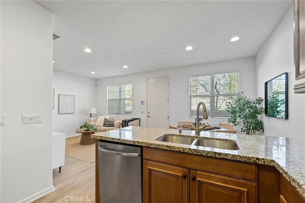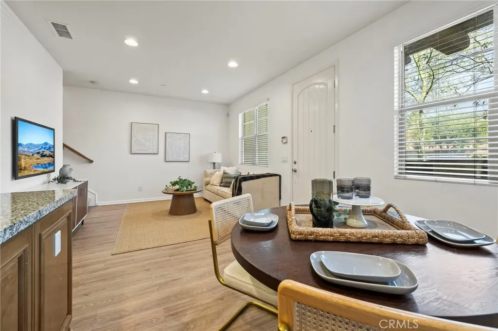 Rarely available in the highly sought-after Pitzer Ranch community, this beautifully maintained 3-bedroom, 3-bath condominium offers the perfect blend of comfort, style, and convenience. Ideally situated along the outskirts of the community, the home welcomes you with a charming enclosed front porch, an inviting space to relax and unwind. Inside, you’ll find an open-concept layout filled with natural light, complemented by laminate flooring, recessed lighting, and a spacious living area that seamlessly connects to the kitchen—perfect for both everyday living and entertaining. The kitchen features granite countertops, warm wood cabinetry, stainless steel appliances, and a functional peninsula with additional seating and a cozy dining nook. A convenient downstairs powder room and direct access to the attached two-car garage add to the home’s thoughtful design. Upstairs, the primary suite offers a peaceful retreat with high ceilings, a walk-in closet, and access to a private covered balcony with neighborhood and mountain views. The ensuite bathroom includes dual sinks, a soaking tub, and a separate glass-enclosed shower. Two additional bedrooms, a full hallway bathroom, and an upstairs laundry area provide both comfort and functionality. Built in 2015 and designed for modern living, this home also features central heating and air, along with access to community amenities including a clubhouse, picnic areas, and barbecue spaces. Located in the desirable Claremont community, close to schools, shopping, dining, and commuter access, this home presents an incredible opportunity—especially for buyers looking to step into homeownership with a move-in ready property in a well-maintained neighborhood.