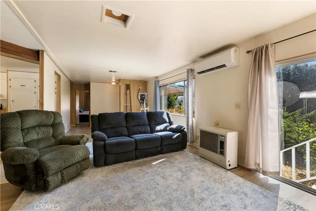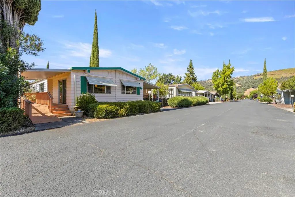THIS SPACIOUS 3 bedroom, 2 bathroom manufactured home located in a gated 55+ park offers comfort and many upgrades. The open concept design seamlessly connects the living room and updated kitchen featuring new flooring, quartz countertops, new appliances and ample cabinet space for storage. The dining area is perfect for entertaining or quiet meals. The roomy primary bedroom and en-suite bathroom are located at one side of the home while guest bedrooms and second bathroom are situated at the opposite side. There are energy efficient split units in each of the three bedrooms as well as the living room for heating and cooling. New flooring throughout. For added storage there is a shed at the end of the carport. Mountain and vineyard views! Lake Village Estates offers a clubhouse, pool, storage area for boats and RVs. Just minutes from wineries!