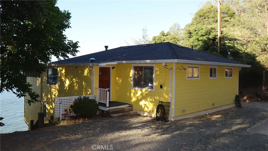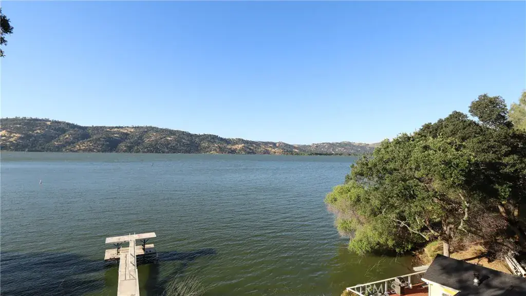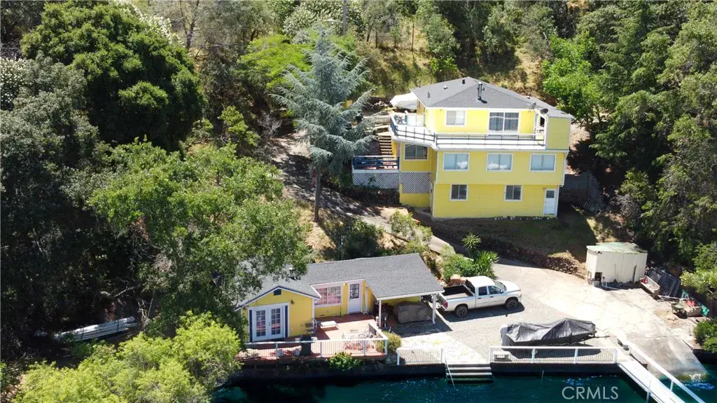LAKEFRONT WITH TWO HOMES Five bedroom, two bath main home, one bedroom, one bath guest house. Covered dock, boat slip with winch, 100 ft water frontage on a deep water cove with no neighbor on one side. Perfect family-sized vacation getaway or permanent home, with potential for income with separate guest home for either short or long term. Laminate flooring, tile baths, custom concrete counter tops. Wood stove with natural stone backdrop. Family room for games and movies. Wrap around decks opening off the living room, including an outdoor deck bar to take in the spectacular natural location with total seclusion and quiet. This is the place where you can really let go, on your own, or with friends and family. Memories to be made here. Move in ready, wrap around decks. Brand new roofs on both homes. Catch fish from your own property, or easily get out on the water and explore California’s largest natural lake within its borders.