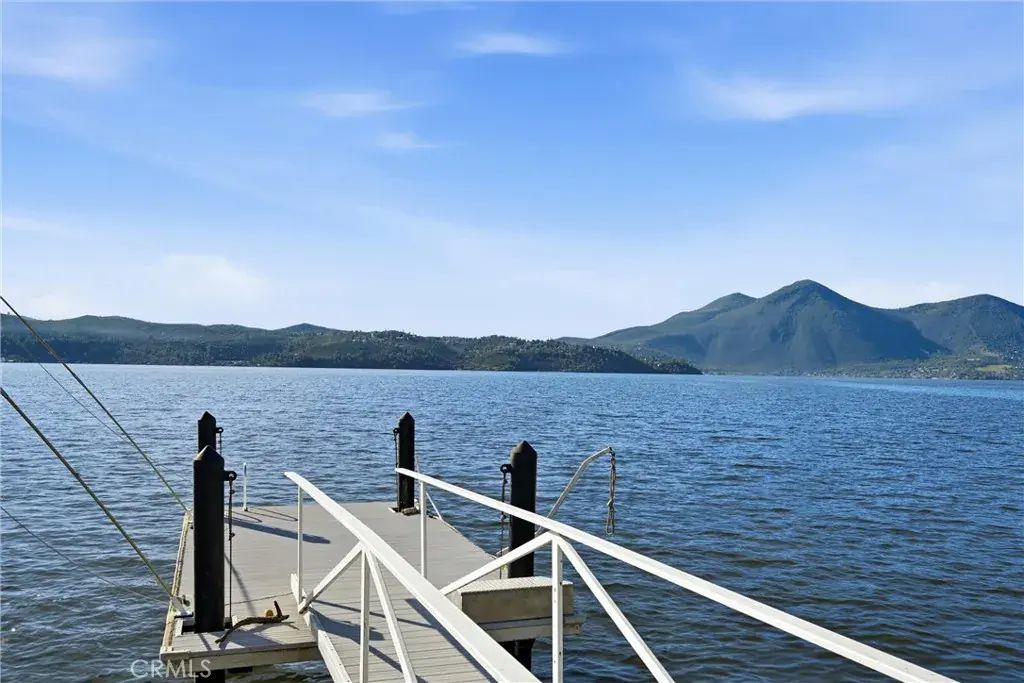 Peaceful Lakefront Retreat with the best panoramic views of beautiful Clearlake and Mt. Konocti. Situated in Oak Cove, this two-story private residence offers versatility as an income generating vacation rental or occupy for your own personal use (or both). Each level provides an individual living space with it’s own private entrance and has been updated on both levels with custom finishes including stone fireplaces, LVP flooring, tiled bathrooms, cabinetry and lighting! The second level was previously operated as a short-term rental and offers open concept living with 3 bedrooms/1 full bath, a galley style kitchen, laundry room, and living room with attached deck to soak in the spectacular views. The main level is currently used as a primary residence and includes 2 bedrooms/1 bathroom, an extra storage room, and open concept kitchen/living room design. There is plenty of room to entertain on the oversized patio out front and enjoy fishing and/or swimming off your private pier with attached floating dock. The low-maintenance patio also includes a fire pit area and included spa for ultimate relaxation. Situated on over 60′ of lakefront seawall, including a rock jetty, this property adjoins a protected marina next door for additional temporary parking for boats and/or other small vessels. Located less than 10 min from nearest boat launch and other amenities, this property is the epitome of lake living at it’s finest.