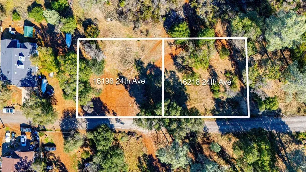 Two parcels being sold together at 16218 24th and 16198 24th Ave in Clearlake, CA. The combined lots total about half an acre with a water meter already connected at 16198 24th Ave.
